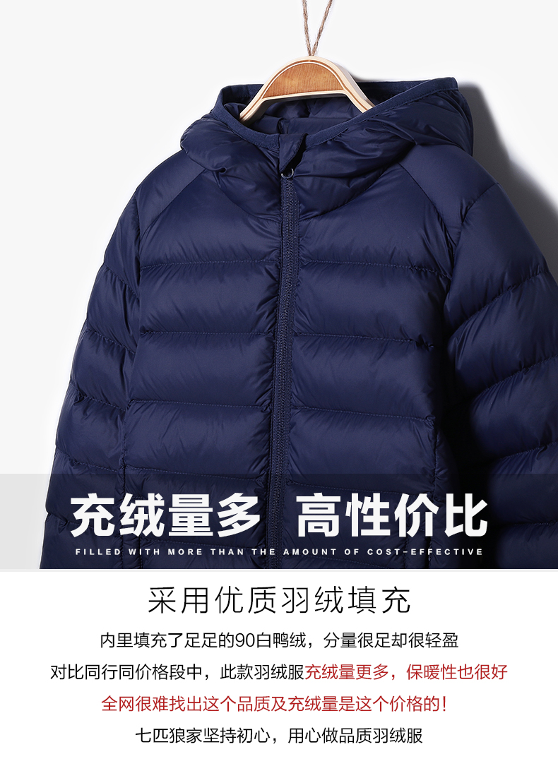 天猫七匹狼童装旗舰店239元,可领110元优惠券,实付129元到手,多款可选。这款七匹狼 儿童羽绒服,内里采用90%白鸭绒填充,蓬松度600+,清洁度1000+,均远高于国家标准,卫生健康。充绒量根据尺码的大小略有不同(49-91g),属于轻薄款,上身不压沉。