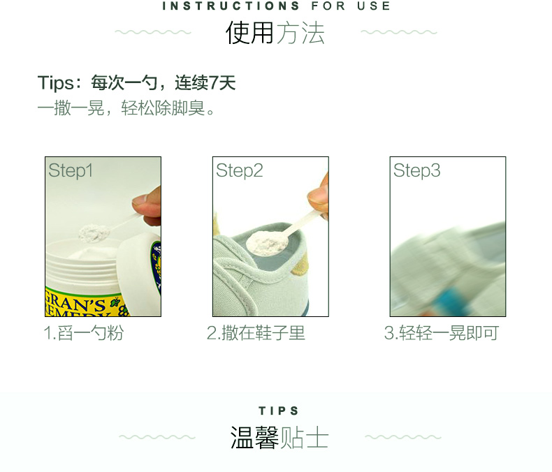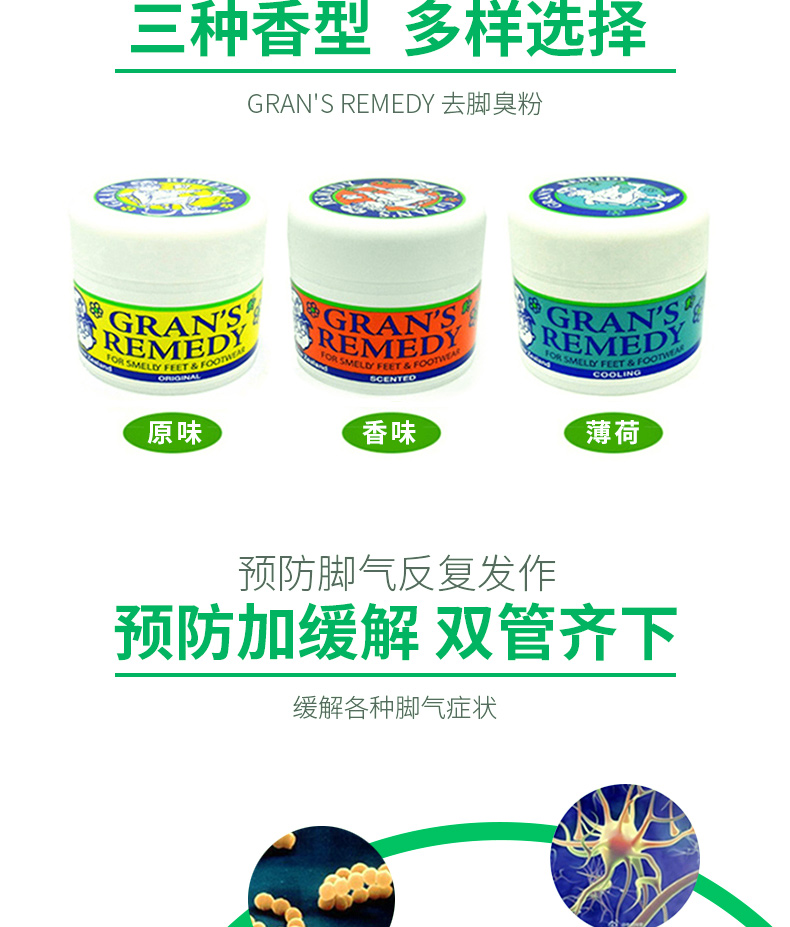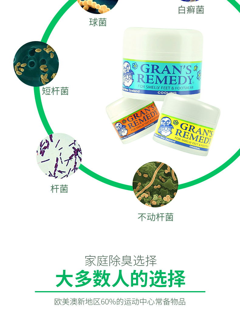 也因此,Grans Remedy除脚臭配方,无疑对喜欢穿球鞋,马鞋,登山鞋或是平日穿鞋受脚臭困扰的朋友来说都是一大福音,更适合团体生活场景,例如部队军营,学生宿舍,工人宿舍等,不用担心脚臭问题而困扰夜里睡眠进而影响白天的工作。