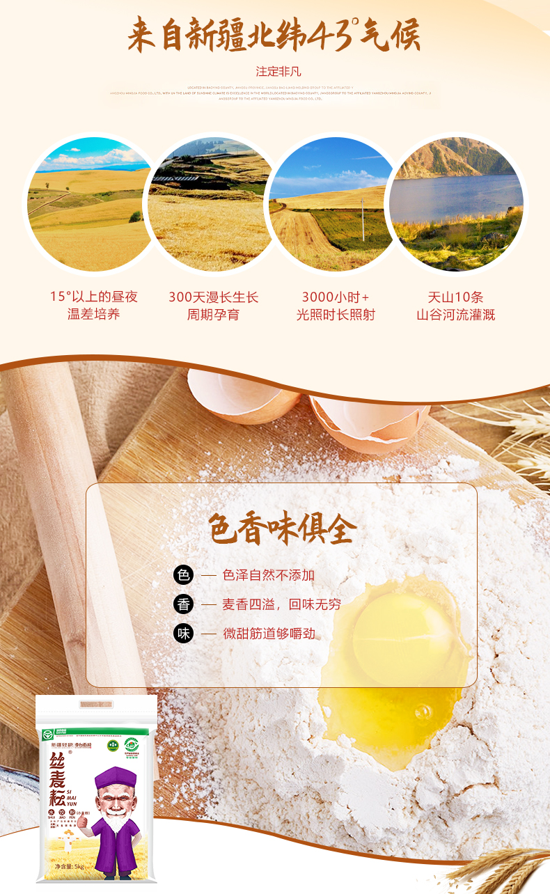 奇台面粉是新疆维吾尔自治区昌吉回族自治州奇台县的特产,官方旗舰店有奇台县政府出具的推荐函。好产地,好麦源,日照好,温差大,雪水滋养,再加上进口机械研磨,营养不流失。奇台面粉为农产品地理标志产品。