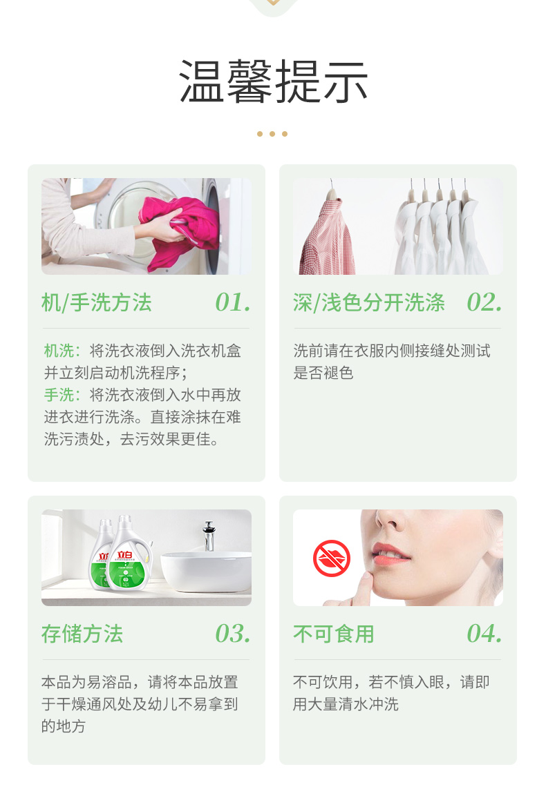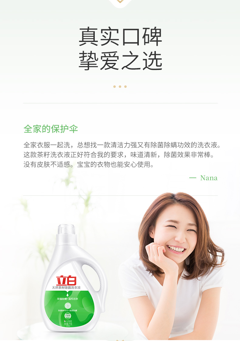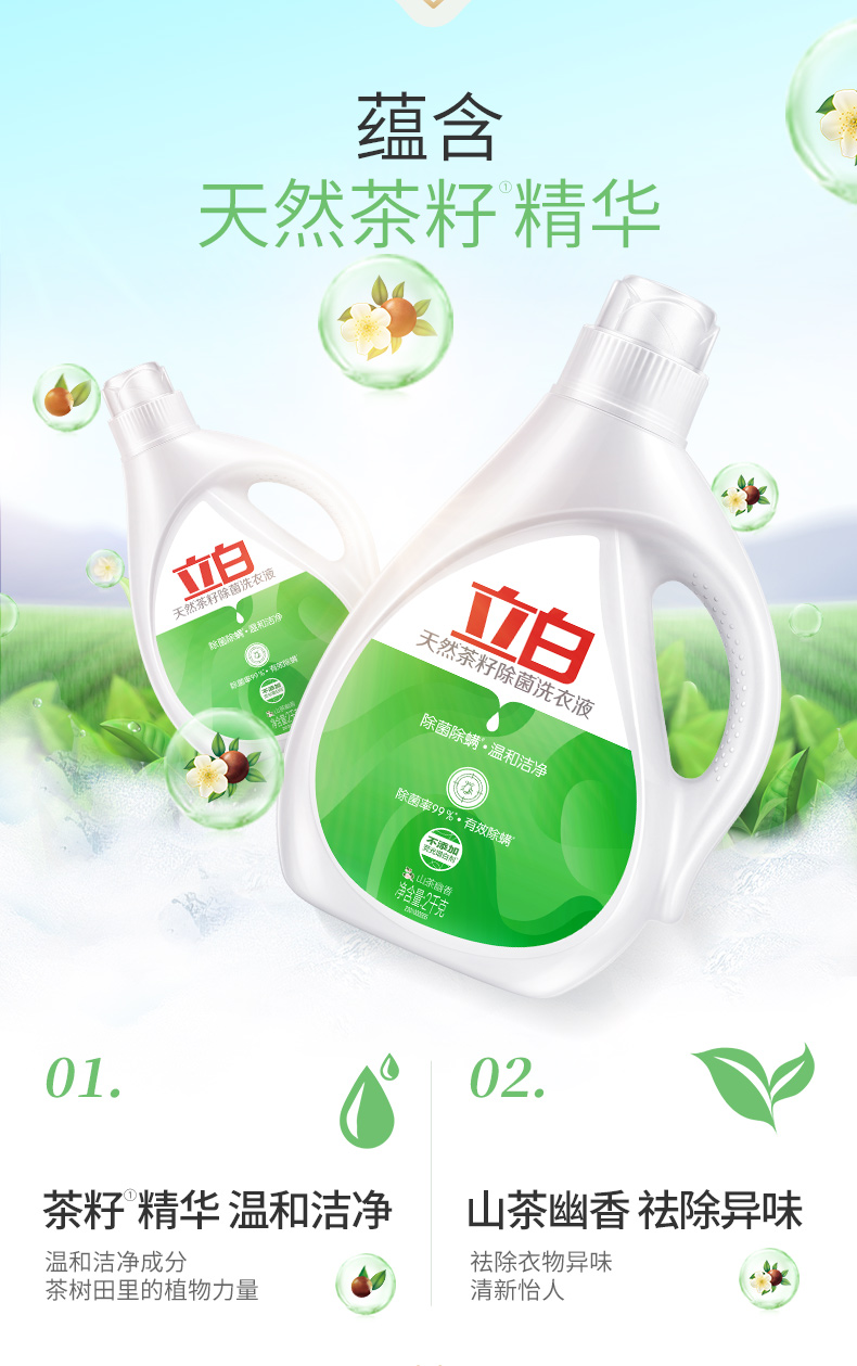规格:2kg装*4瓶、1kg装*4瓶,一共24斤超值,这款立白茶籽洗衣液选用茶籽精华,除菌率高达99%,可以有效去除异味和螨虫,轻松瓦解污渍,减少细菌和螨虫对人体的伤害,不添加荧光剂,只选用天然成分,对皮肤温和无刺激。领券链接点此
