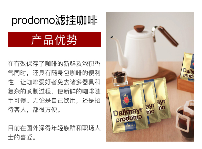 天猫dallmayr达尔麦亚旗舰店150元,下单立减75元,可领30元优惠券。保质期至2022年1月,喝完不是问题,介意慎拍。德国原装进口,百年匠心品质,全球享誉的Prodomo系列精品滤挂式咖啡,中度烘焙,酸度中等。