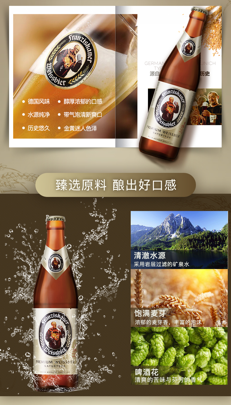 天猫franziskaner旗舰店89元,可领10元优惠券,实付79元到手。Franziskaner教士啤酒,创立于1363年,属于德国慕尼黑斯柏特富兰西斯卡娜酒厂旗下,名列世界三大白啤酒之一。