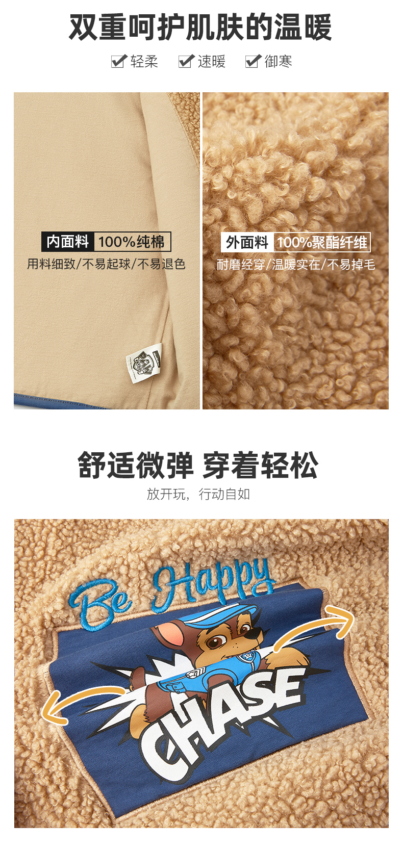男女童多色可选,精选舒适面料,毛绒绒的手感超柔软细腻,内里采用全棉的针织里布,柔软舒适。清新有范,超强保暖,秋冬御寒,可外穿可内搭,时尚酷炫又保暖。