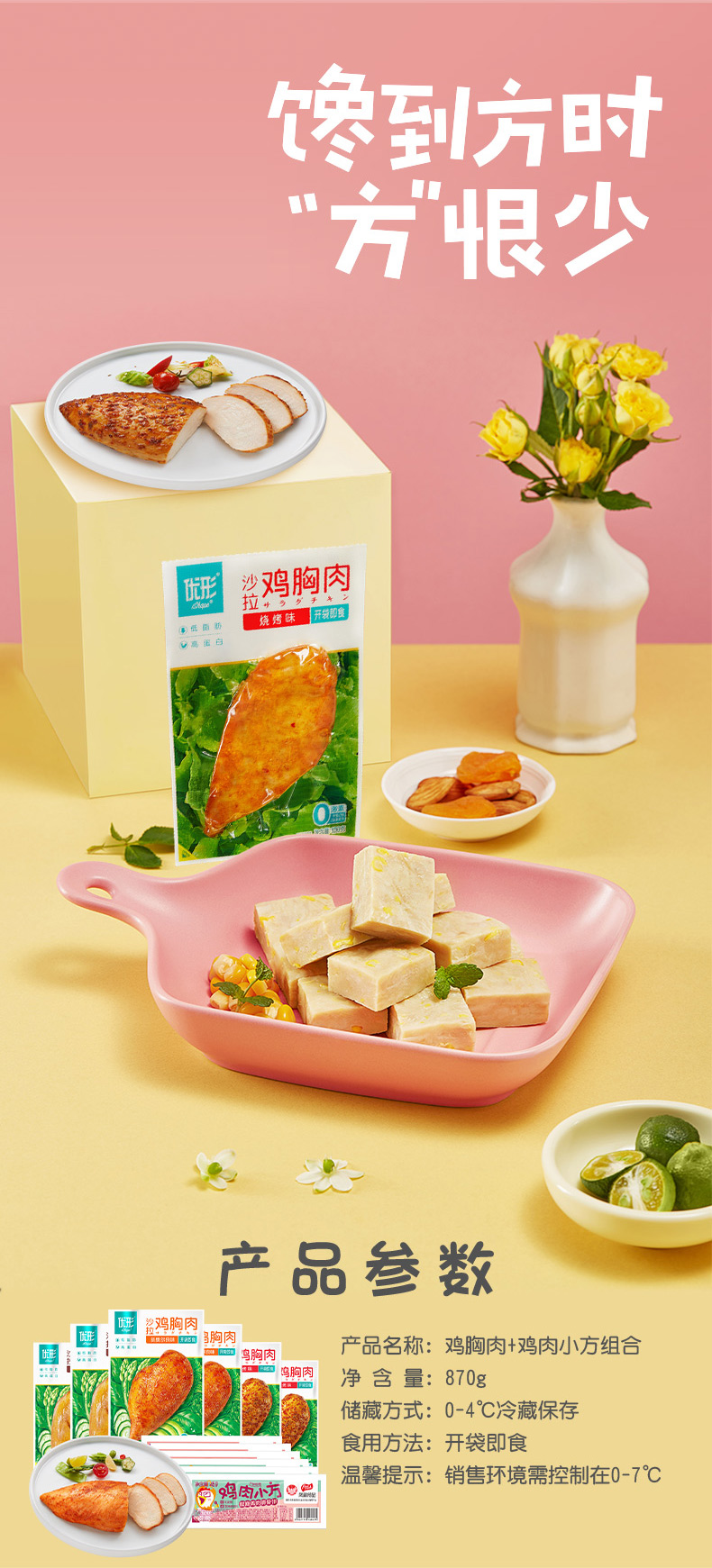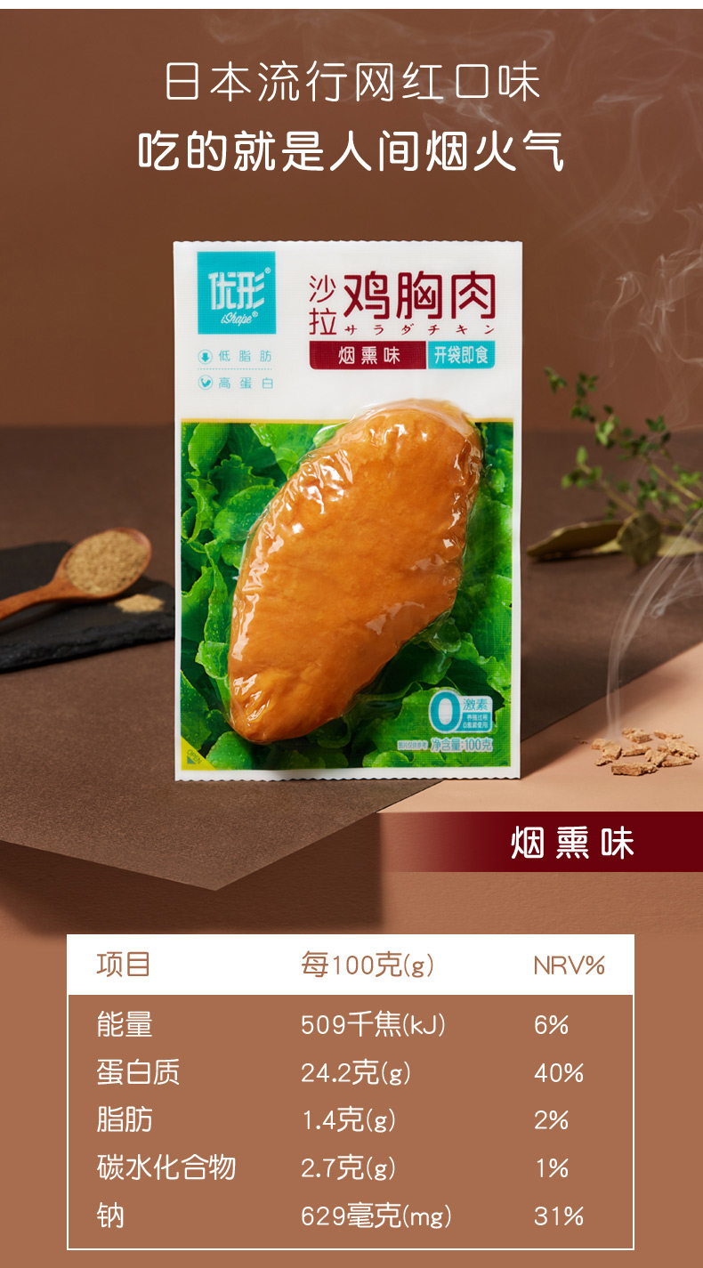 凤翔优形鸡胸肉,为健身运动而设计,新奥尔良、烧烤、烟熏三种口味,选用优质鸡胸,蛋白质含量占比28%,脂肪仅有5%,肉质细腻,营养丰富,为人体提供营养能量同时能保持好身材,好吃不怕胖。