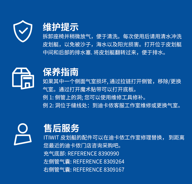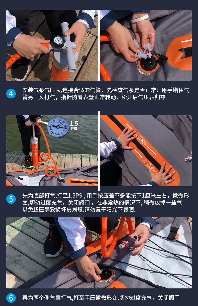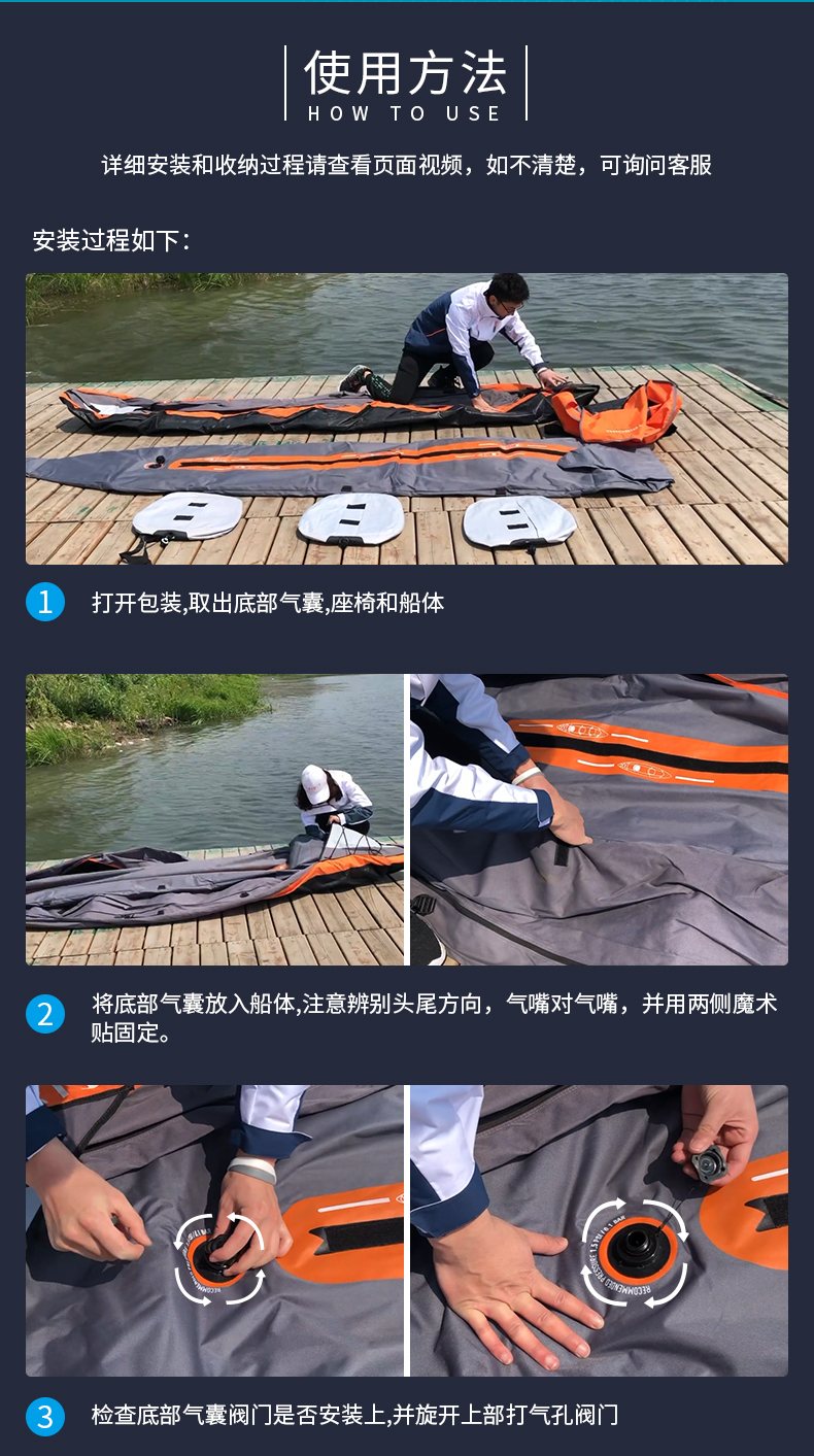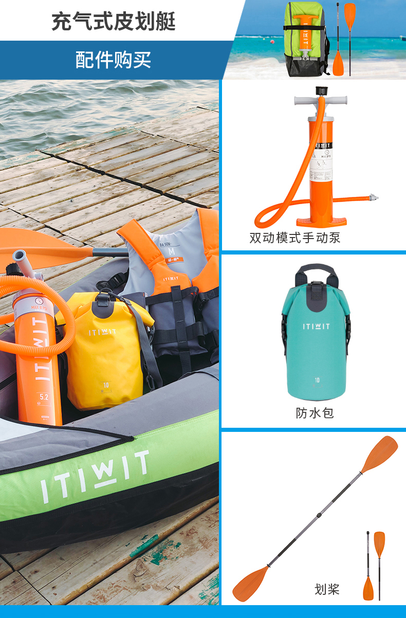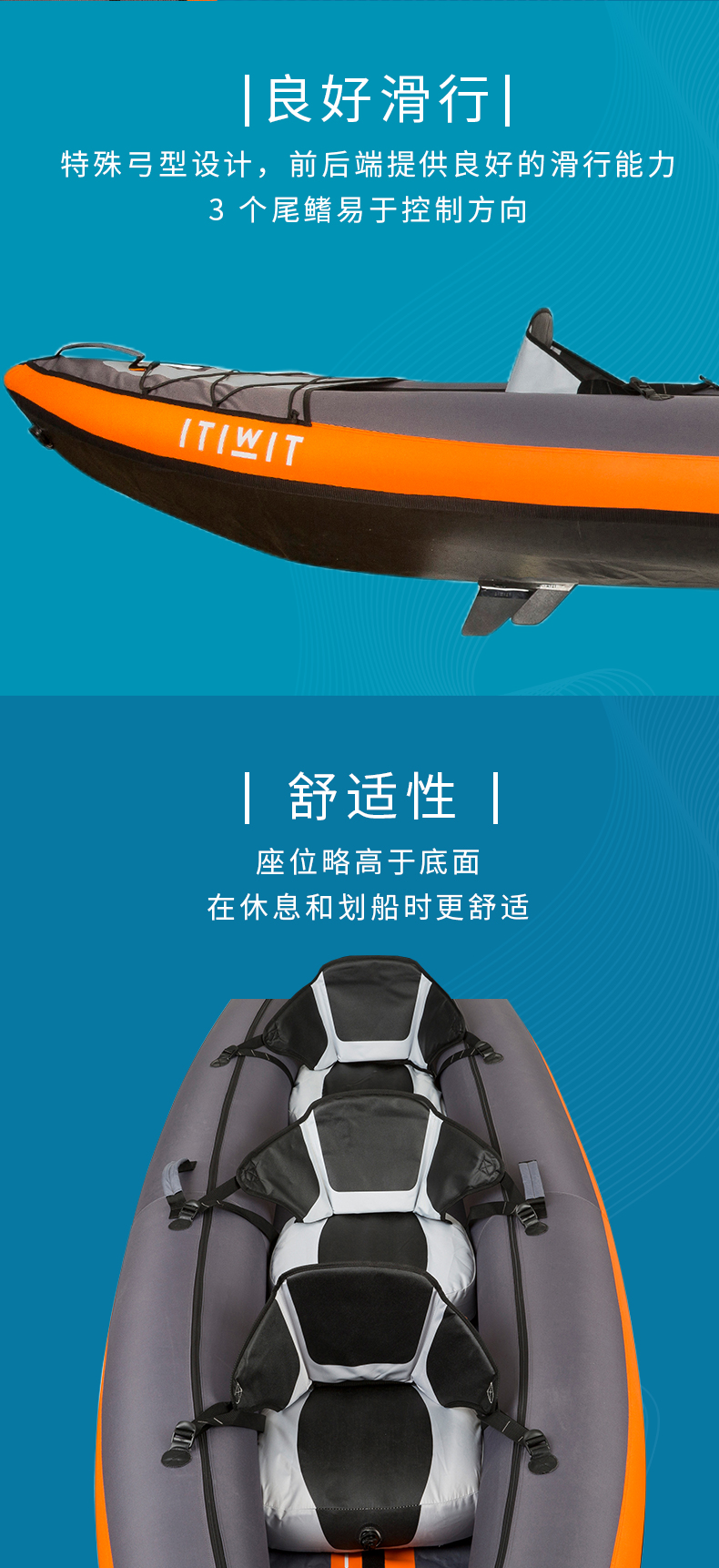 此款充气式皮划艇可根据座位数量选购,舒适稳定易操作,适合水上运动爱好者在平静水面使用,适合漂流、家庭出游、单人出游。