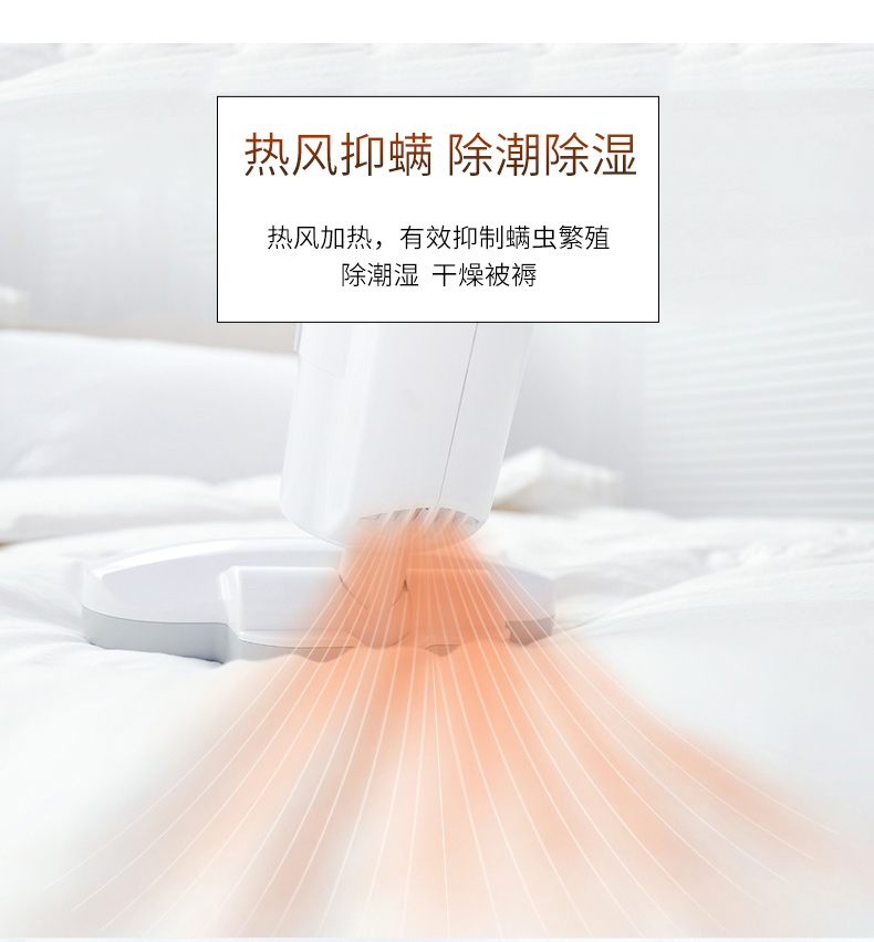 温风抑螨:吸尘的同时吹出热风,对被褥进行加热祛除湿气,抑制螨虫的生长;