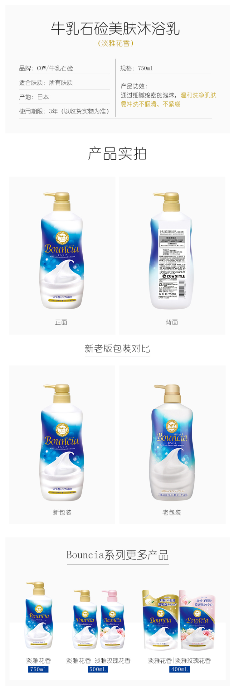 承袭牛乳石碱百年独特釜顶制法,采用植物性石碱素材,成分天然温和,添加了三种美肤成分:胶原蛋白、尿玻酸、牛奶蛋白,深层滋润肌肤,保持沐浴后的肌肤光滑柔嫩。
