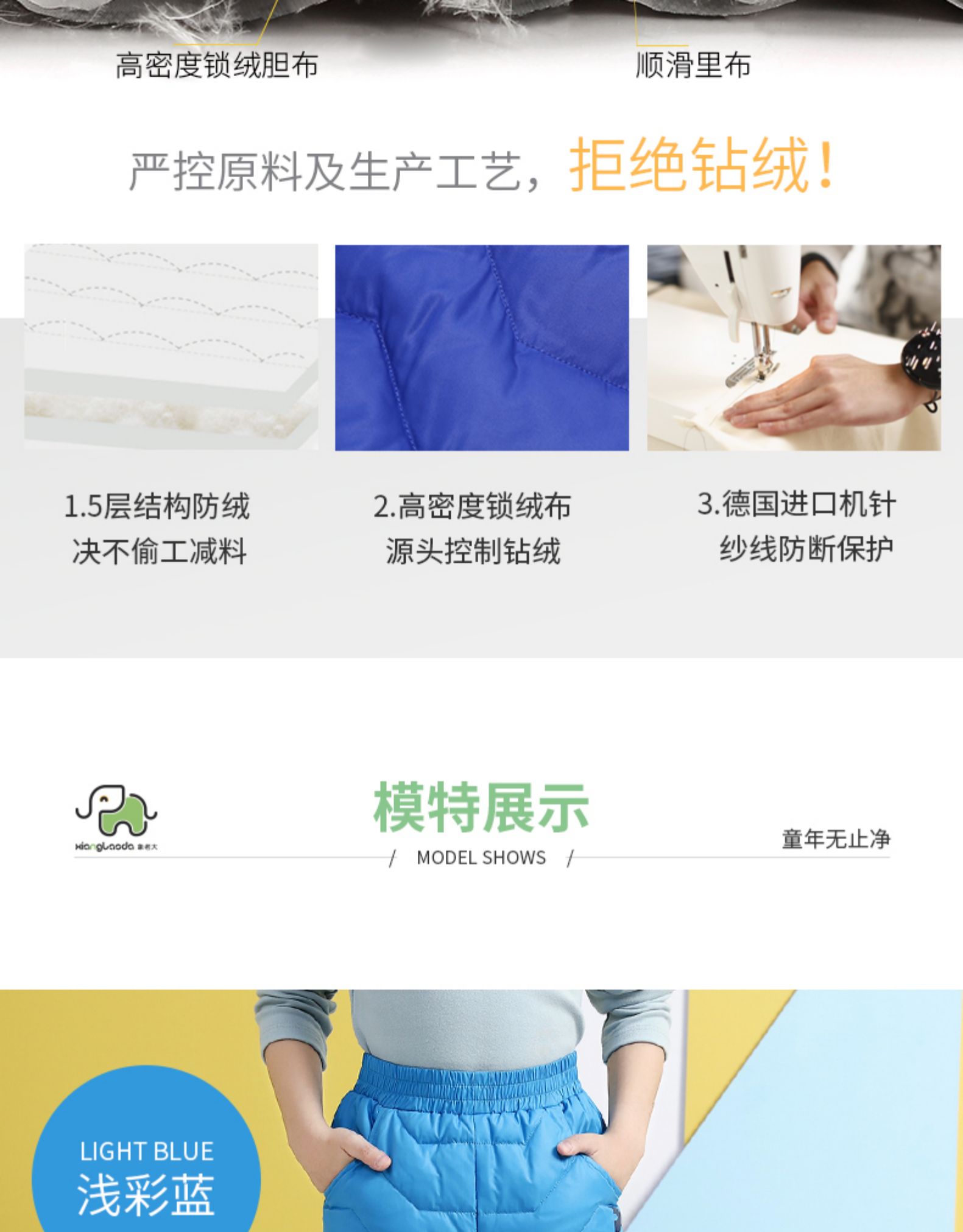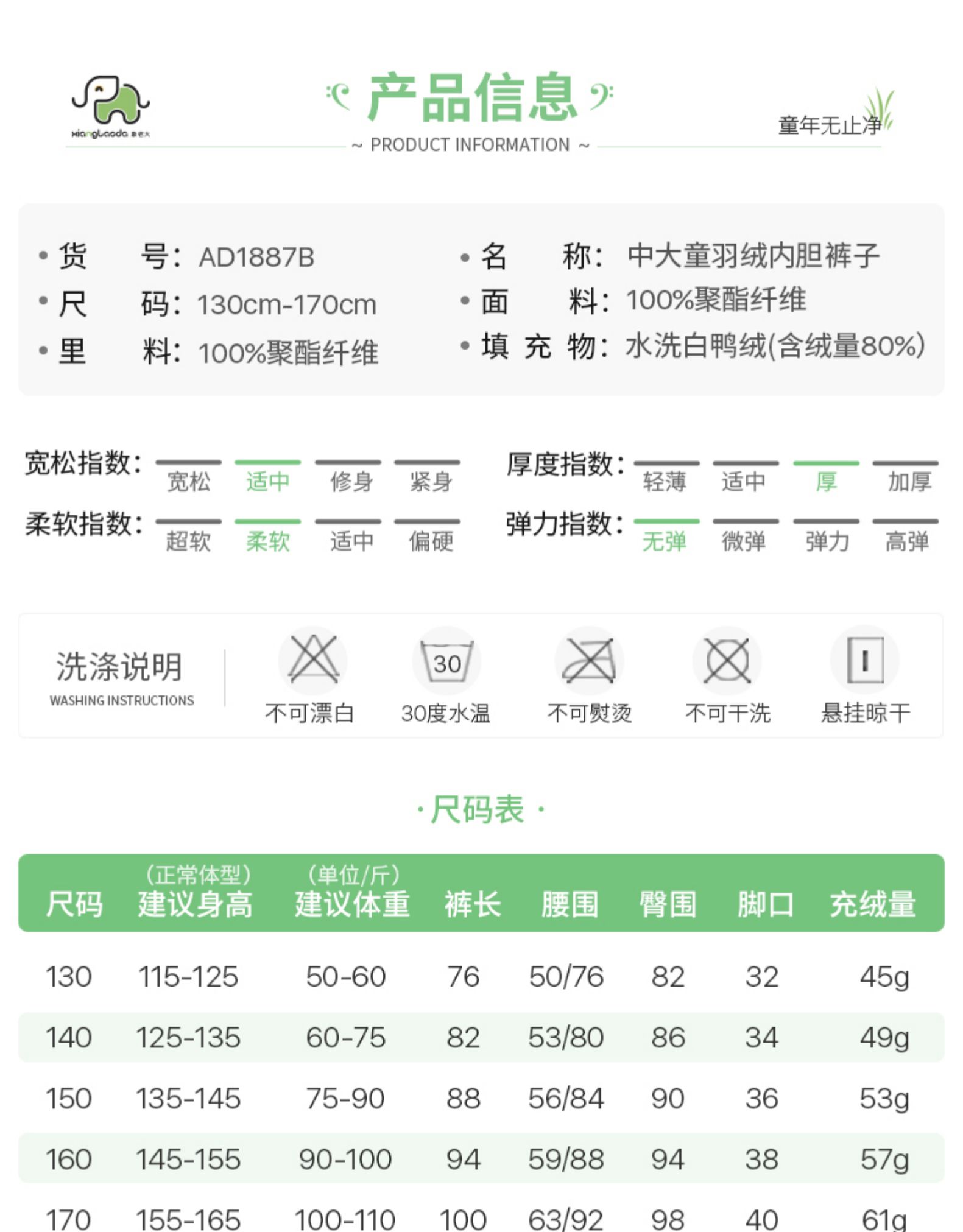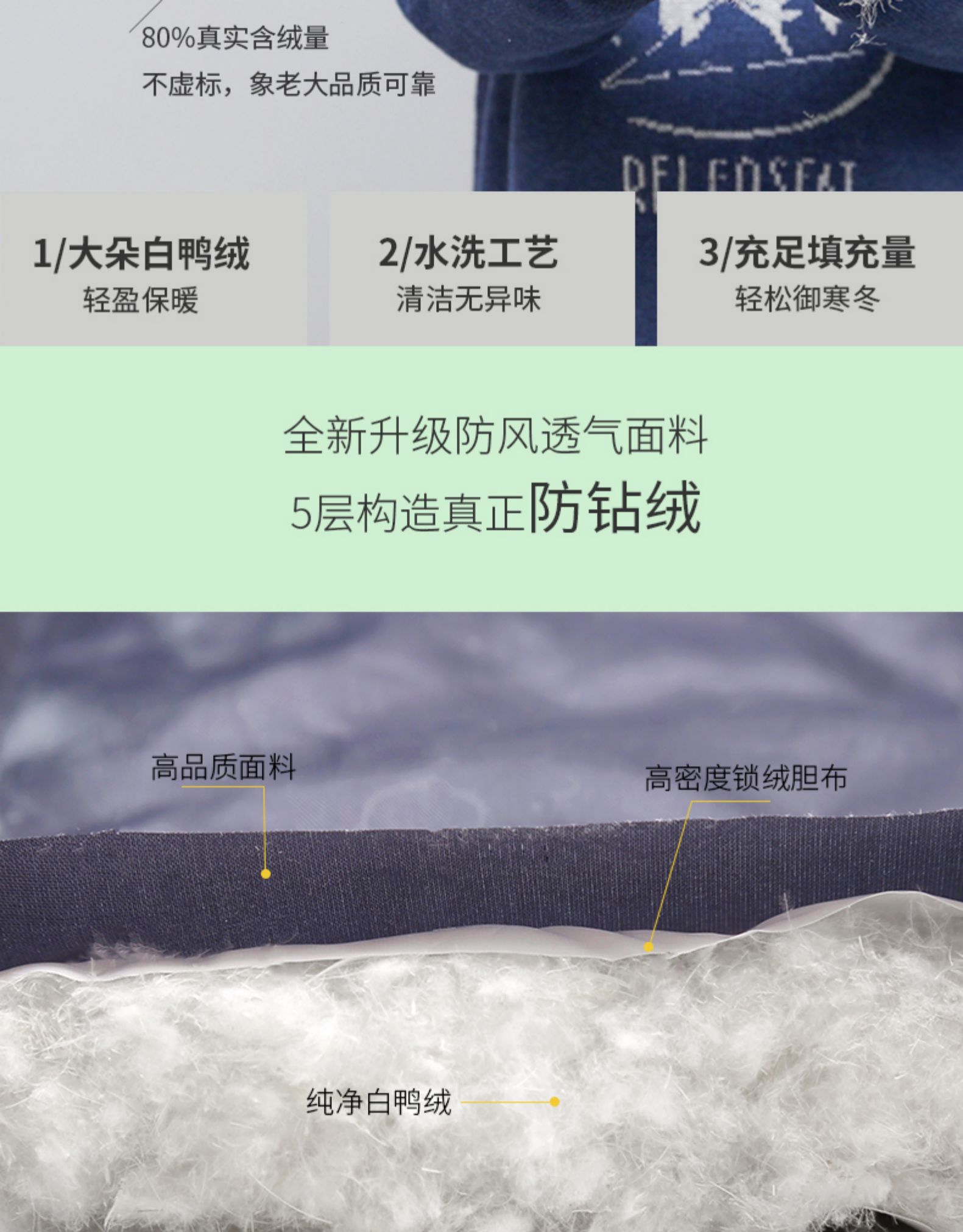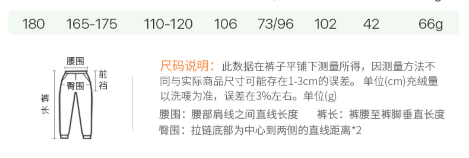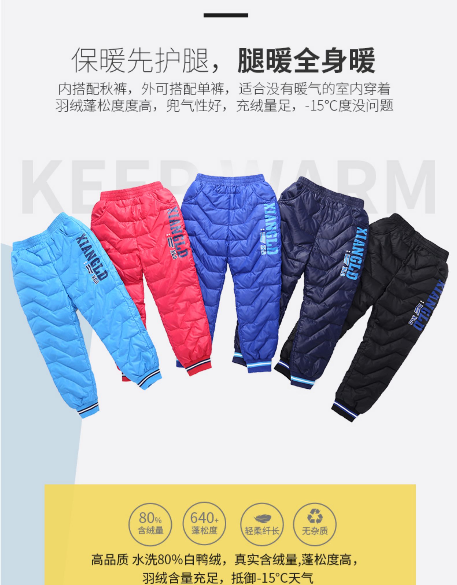 秋冬护腿神器,选用高品质的大朵绒白鸭绒,含绒量80%,相比90%支撑回弹性更好,兜气性好充绒量足,轻暖无压迫感。鸭绒经过三道水洗,去螨、去脂、去异味,大身是高密聚酯面料,全新升级五层构造,舒适透气,防钻绒、防泼水,耐脏易清洗。-15°C度没问题,外穿可配秋裤,内穿可单裤,适合没有暖气的室内、室外穿着。