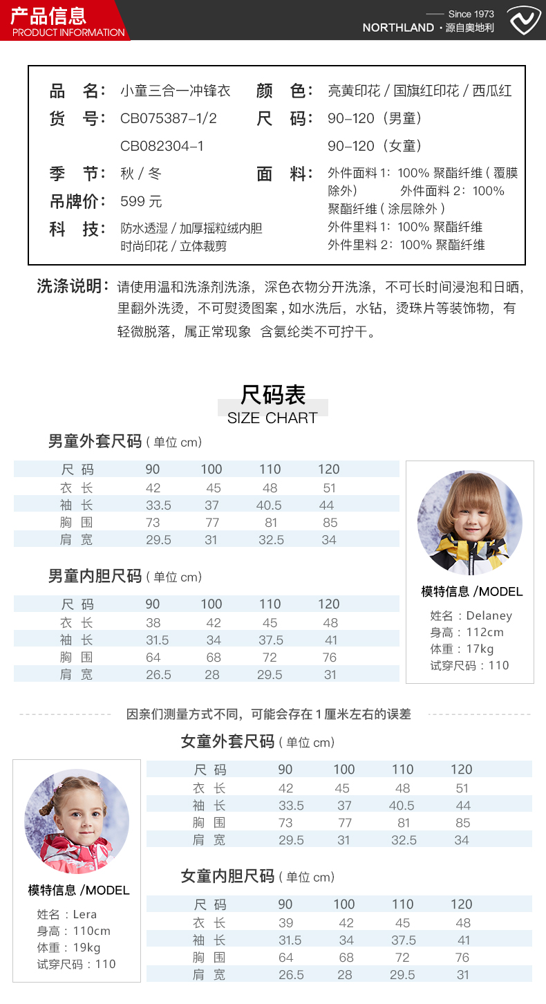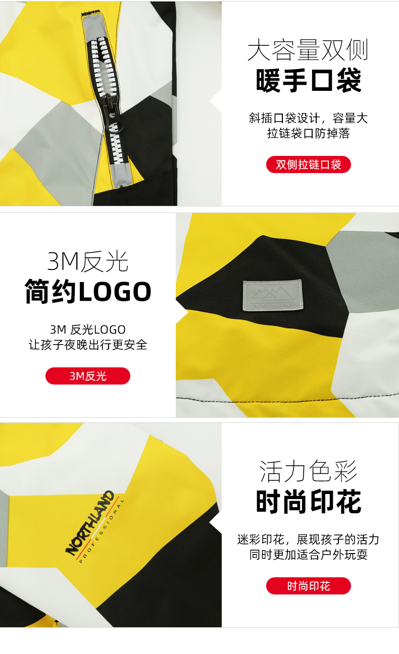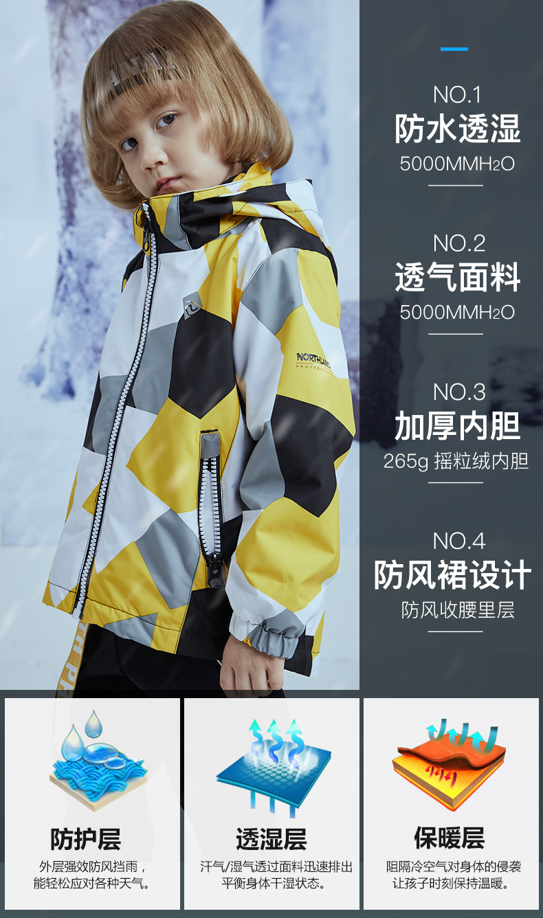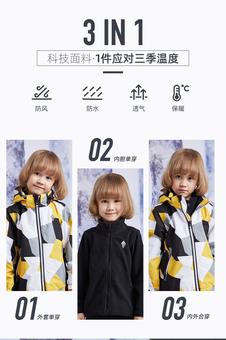 男女童同款,时尚潮范,防风防水保暖 可拆卸两件套。