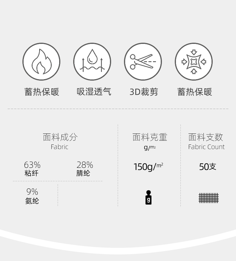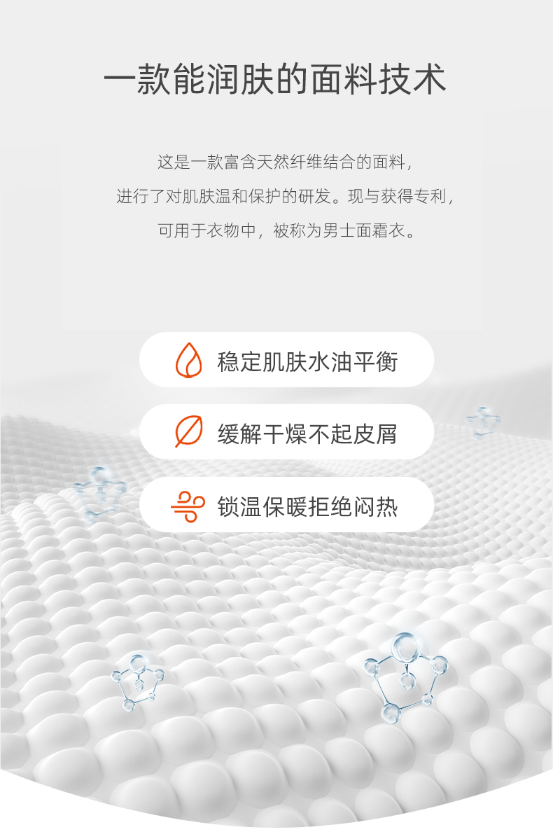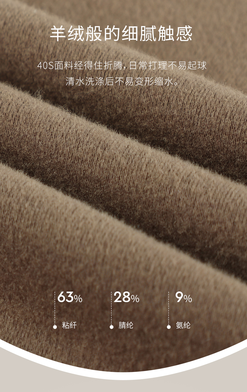 这款乔百仕 男士无痕秋衣秋裤套装面料为63%粘纤、28%腈纶和9%氨纶的混纺面料,富含天然纤维,基于对皮肤温和保护的研发,能够稳定皮肤的水油平衡,缓解皮肤干燥,秋冬不易起皮屑,表层加厚防风,里层绒毛密实,日常打理不易起球,不易变形缩水。