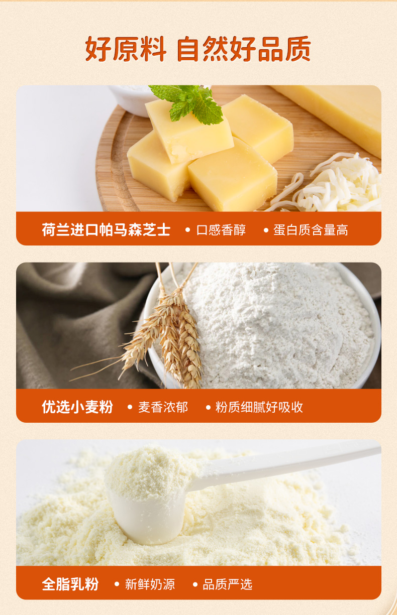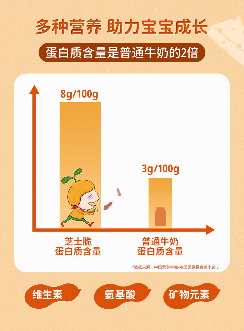 无防腐剂、膨化剂、色素、香精、食盐成分,营养上蛋白质含量是普通牛奶的2倍,还含有维生素、氨基酸和微量矿物质元素。