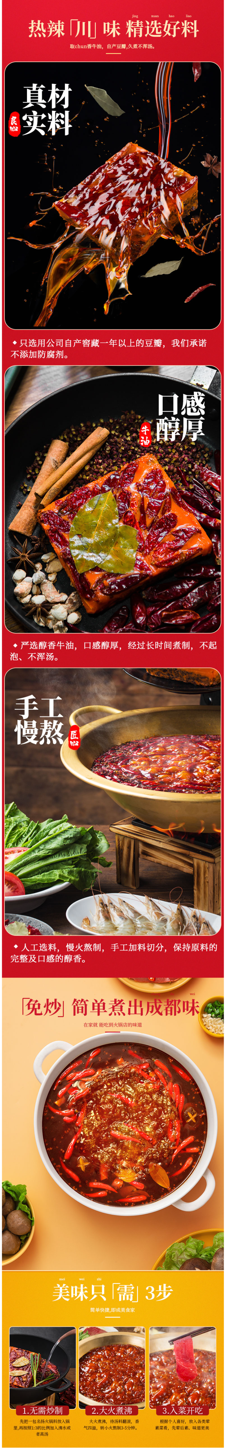 这款名扬 牛油火锅底料,选用上等牛油,辣椒、花椒和豆瓣等制成,特辣型,牛油色白润无杂质,口感醇厚,即使长时间熬制,也不起泡,浑浊,纯手工慢火熬制,香醇。