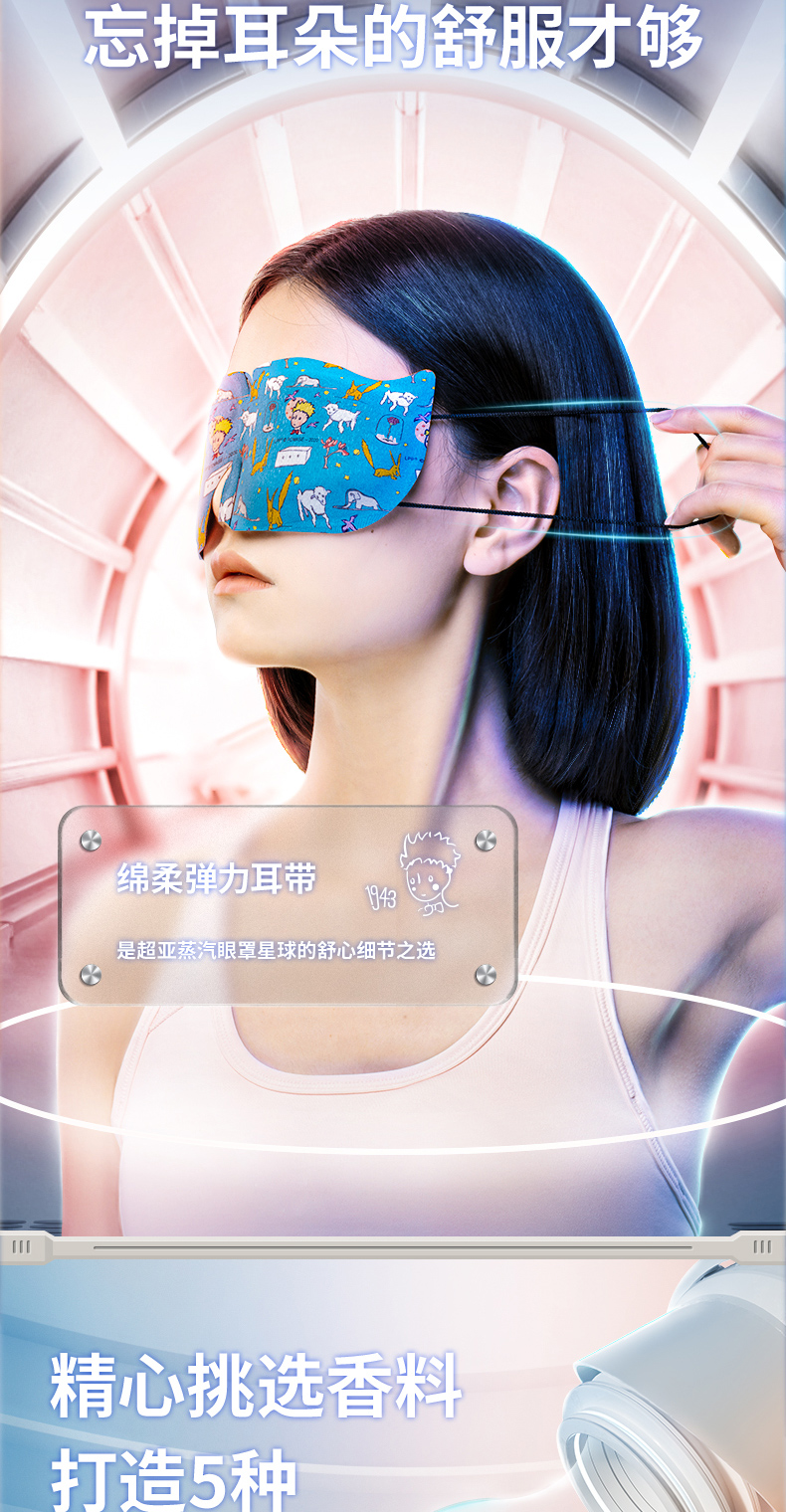 罩体是柔软高弹的水刺无纺布面料,亲肤安全无毒,内置1mm发热片,对眼部无压感,挂耳不疼,翻身不掉
