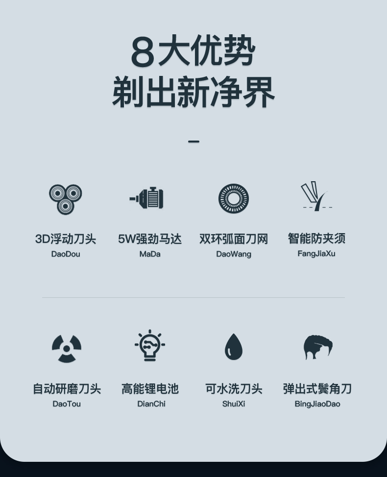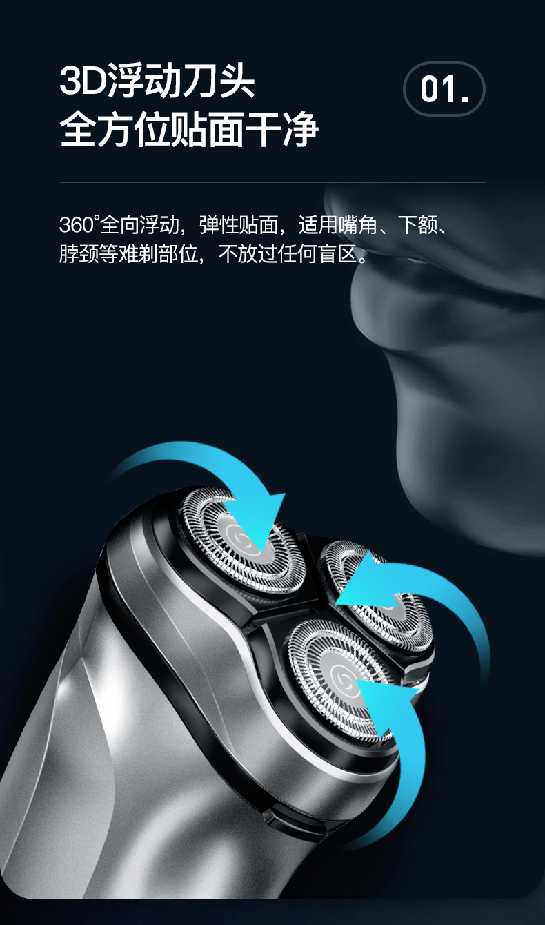 天猫映趣盈增专卖店59.9元,可领10元优惠券,实付49.9元到手。这款映趣电动剃须刀,电动全身水洗干湿两用,三组独立浮动刀头,比普通双刀头增加1/3剃须面积。超薄双环刀网设计,剃须效率双倍提升。智能防夹须,LED电量显示。5W大功率,充电1小时续航2个月。 自动研磨刀片,分体式设计,刀头可轻松取下水洗。