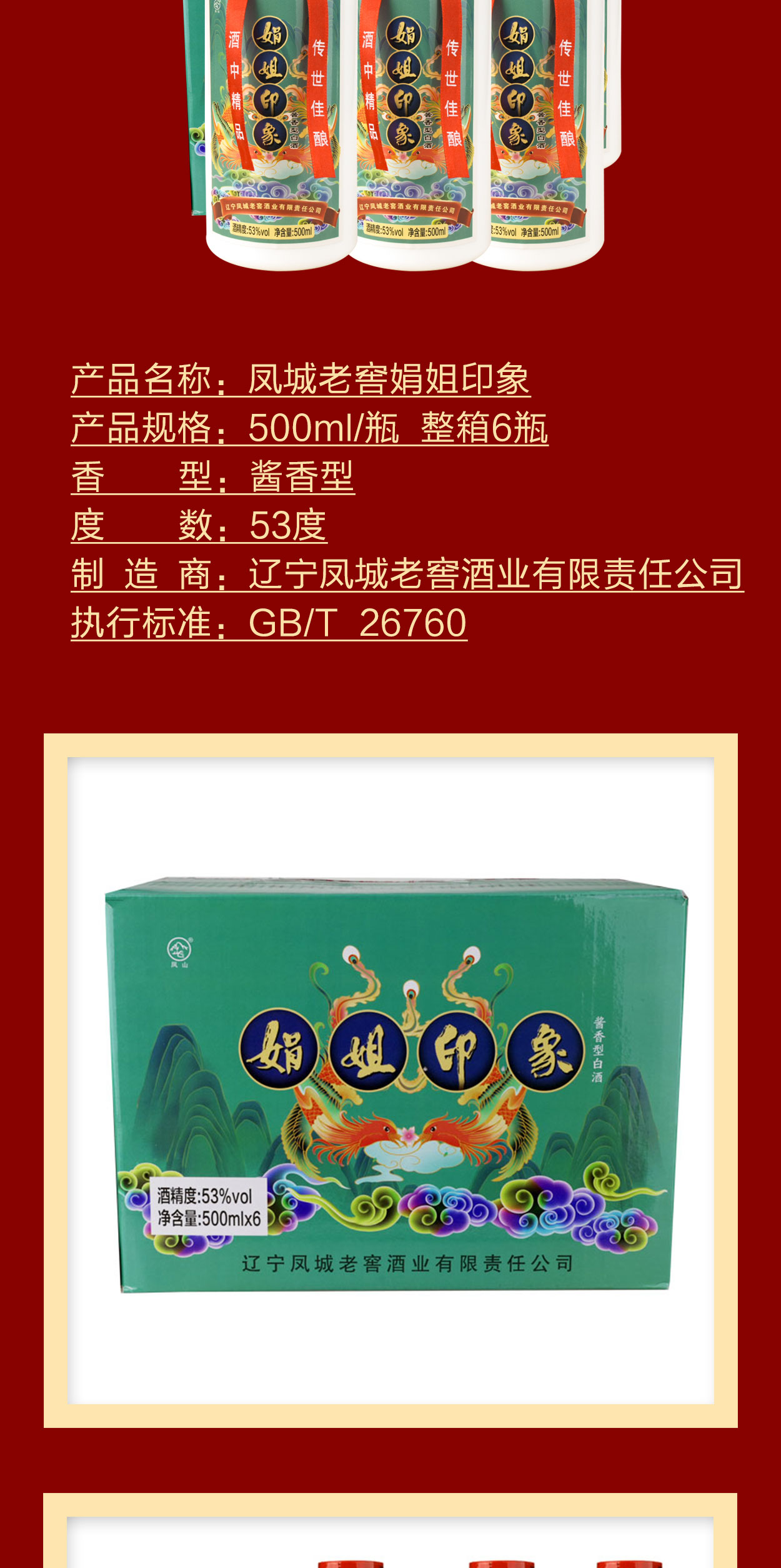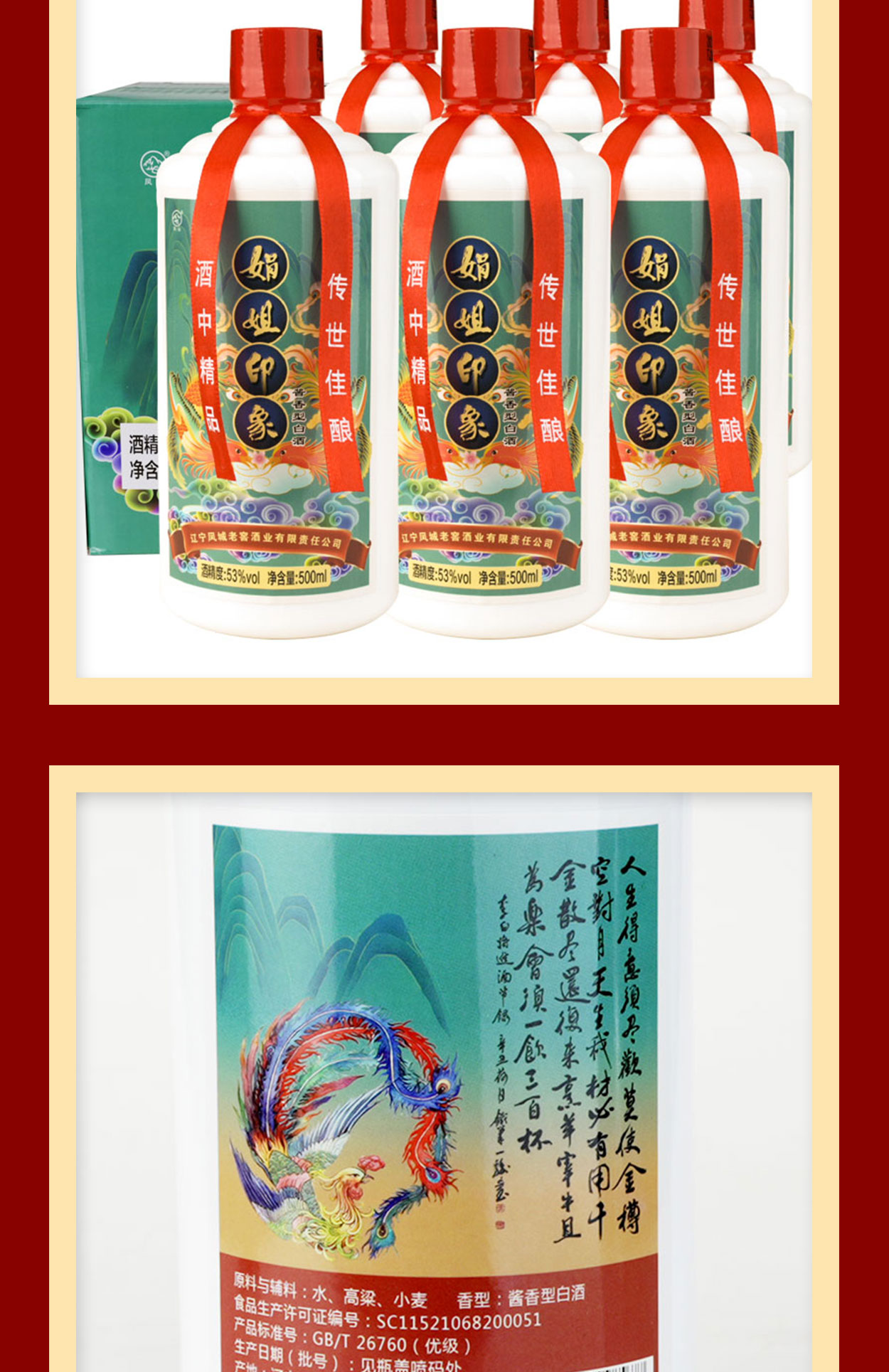 主料为东北原产的红高粱,小麦为原料,纯粮酿造,与飞天茅台一样的53度酱香型,酒香缠绵、好喝不上头。