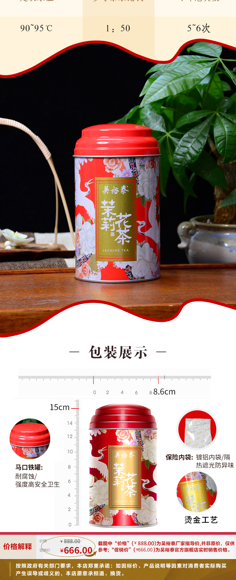 天猫吴裕泰官方旗舰店69.9元,可领30元优惠券,实付39.9元到手,中华老字号吴裕泰,主营茶叶、茶制品、茶衍生品,以自拼茉莉花茶为主要特色,非遗技艺、六次窨制,其特点是:"香气鲜灵持久,滋味醇厚回甘,汤色清澈明亮,耐泡",被消费者亲切地称为"裕泰香"。