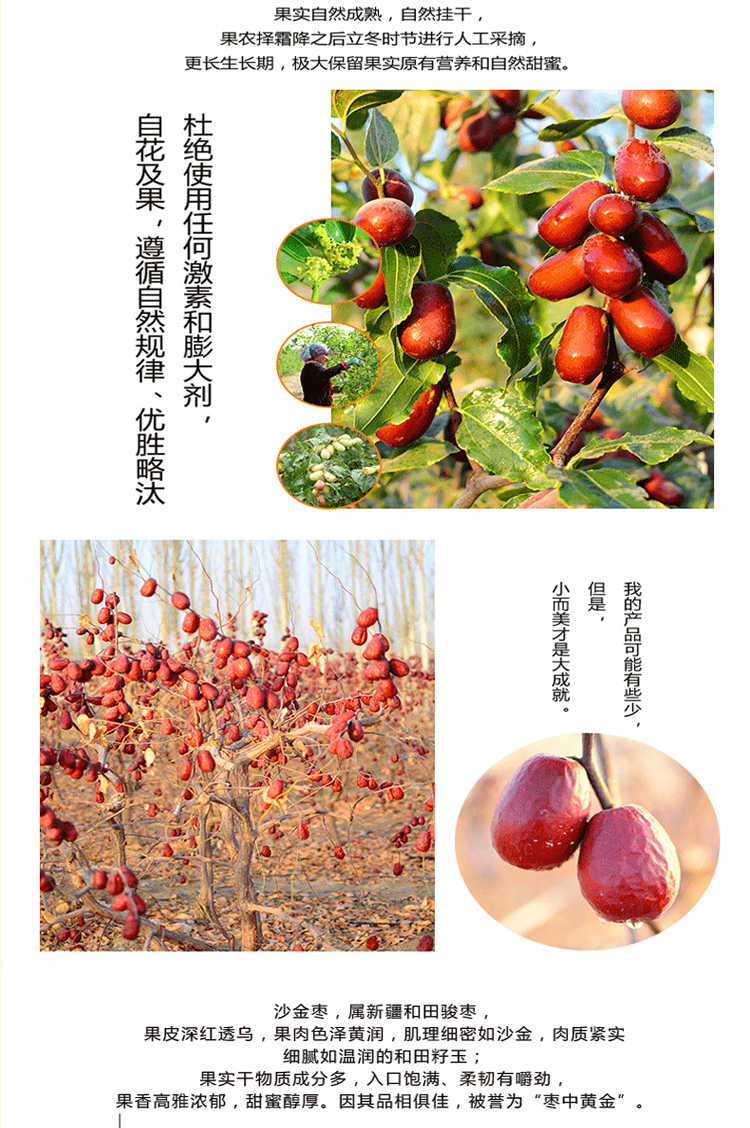 这款金沙传奇红枣经过中国有机种植及有机加工食品认证,颗颗精选,果肉厚实饱满,果皮轻薄,果核小,色泽红润鲜亮,枣肉嚼起来有韧性,口感甘甜,百吃不腻。