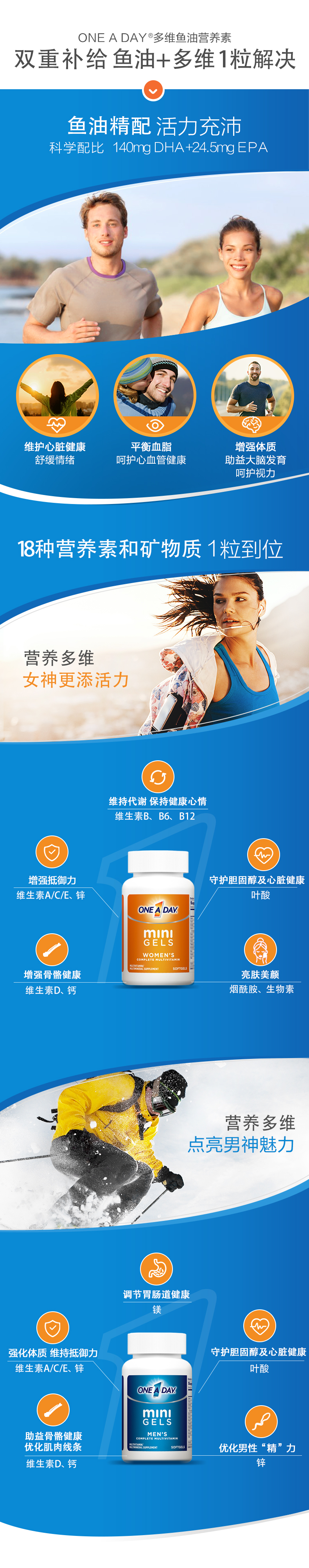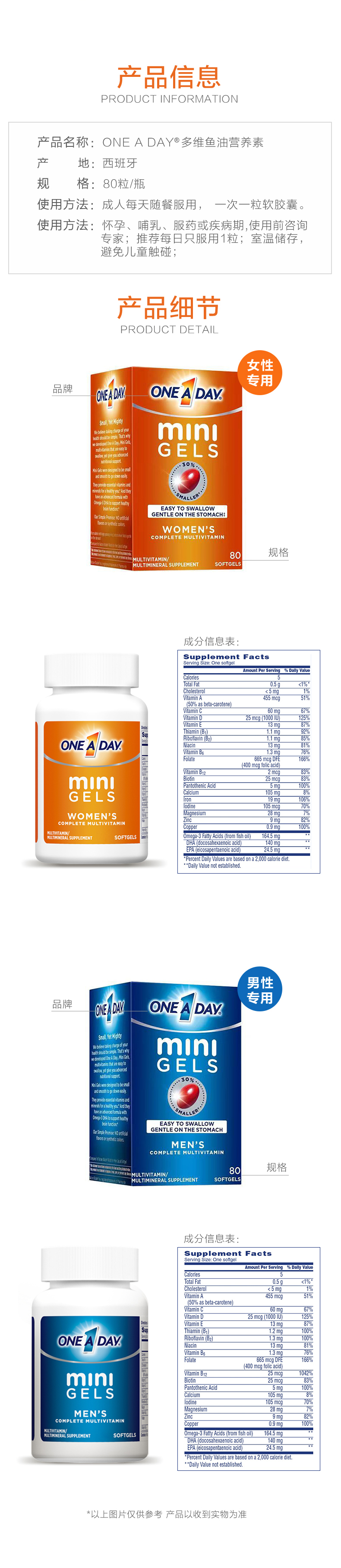 这款One A Day复合维生素,美国原产,蕴含18种营养素+EPA&DHA(鱼油成分),比普通胶囊体积缩小了30%,更易于服用。