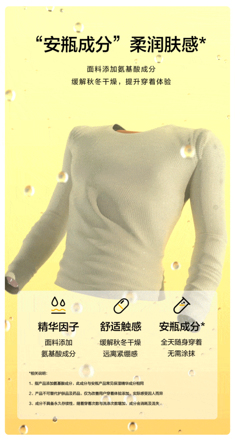 京东自营售价159元。 精选优质棉朵与科技弹力纤维混纺,形成云朵般柔软回弹材质,触感绵软细腻,舒适亲肤,面料添加氨基酸、角鲨烷保湿成分,柔润肤感,缓解秋冬干燥,HeatLock锁温材质,阻挡冷空气入侵,轻盈蓄热保暖,干爽排汗不闷热,基础百搭色系,圆领高领两款,单穿叠穿都OK。
