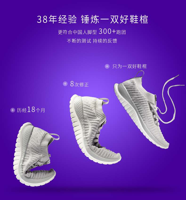 这双是Pace 3.0也就是第三代升级款,鞋面使用流行的一体织袜套设计,有像袜子一样的舒适包裹感,棉麻混纺的鞋垫,高耐磨材料的IP大底,总的看这款鞋子的设计和用料都不错,性价比高,值得入手。