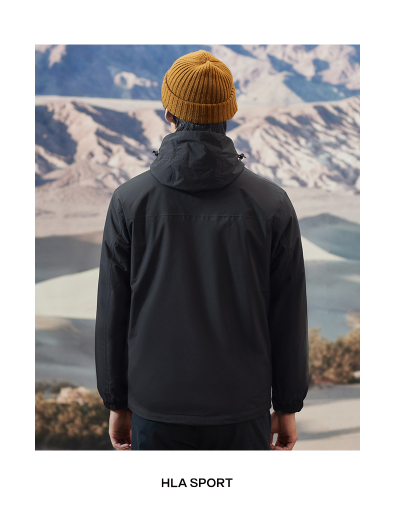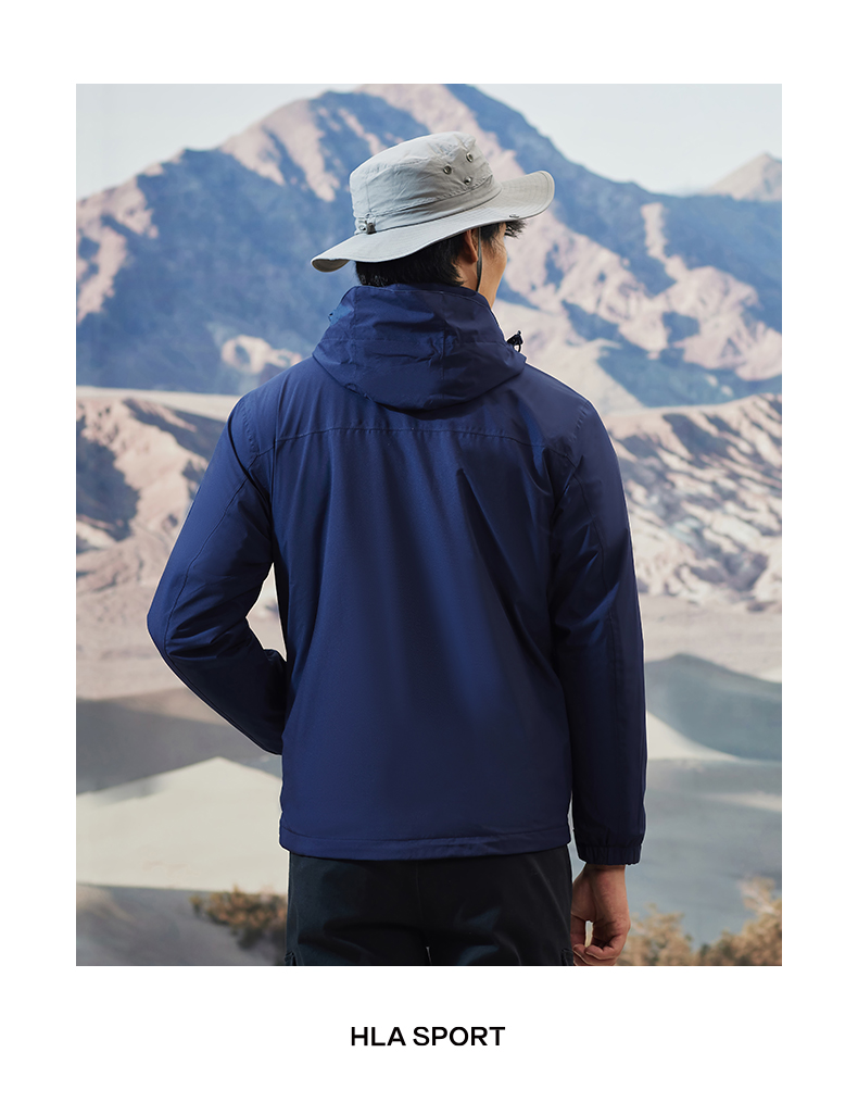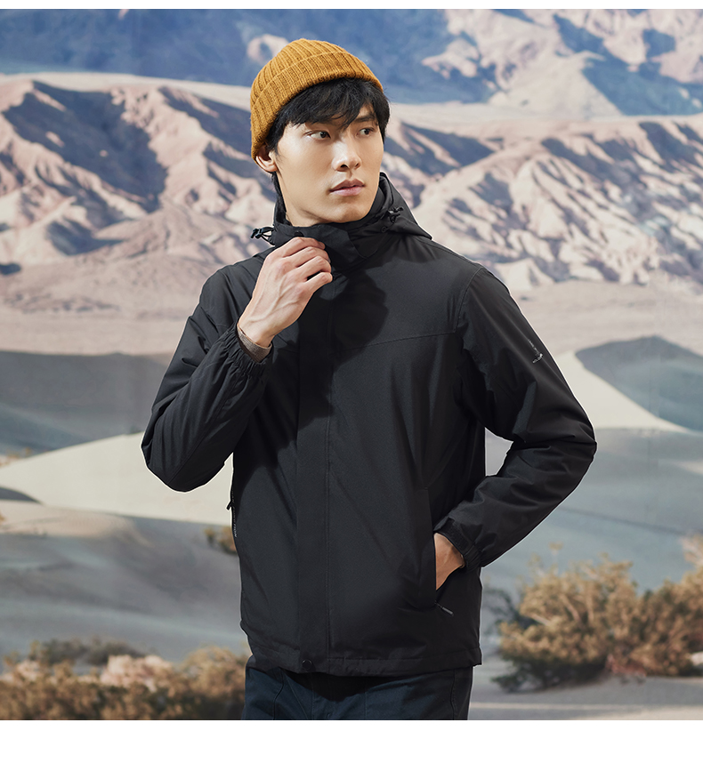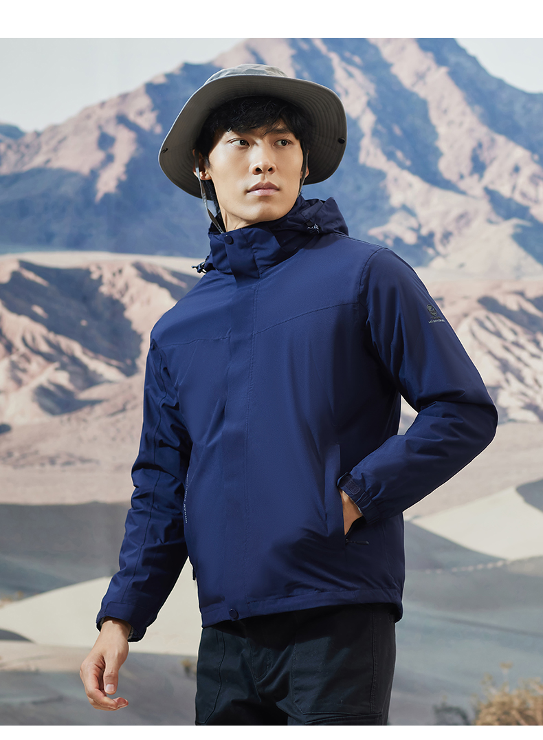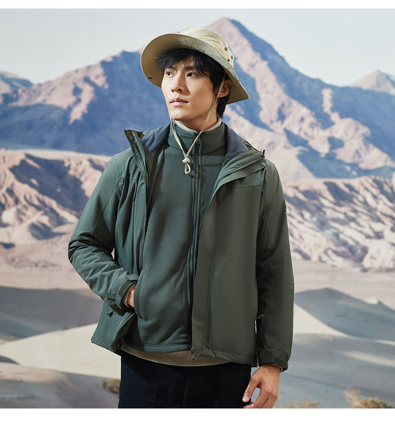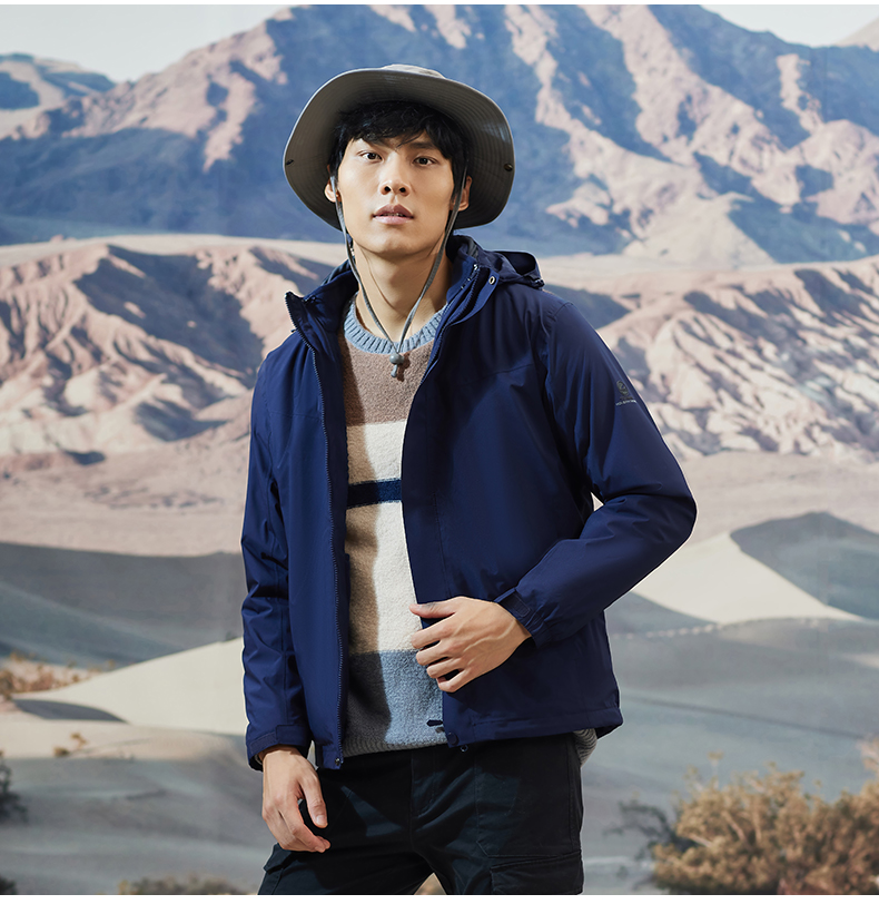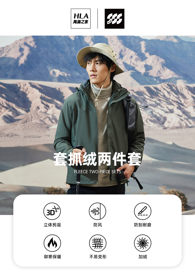海澜之家的这款三合一是2021年想新款,外层是冲锋衣,内里是抓绒,可组合在一起穿,也可单穿,是春秋东三季都能穿的万能款,能抗大风防大雨,比雨衣好使多了。
