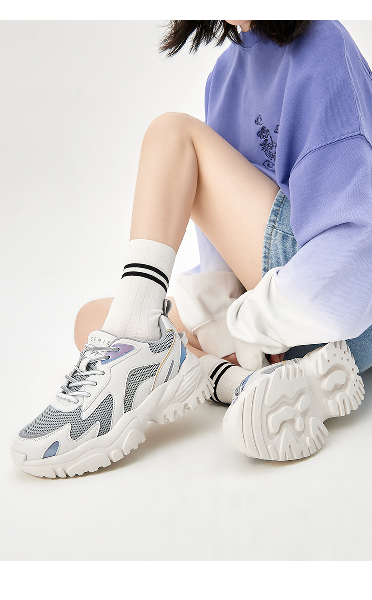 天猫semir鞋类旗舰店199.99元,可领100元优惠券,实付99.99元到手,百搭厚底老爹鞋,多层次拼接而成,形成丰富的层级感,视觉增高更显腿长,流畅的曲线动感鞋面设计,搭配反光贴条,白天撞色,夜晚炫酷反光,多元化时尚潮流设计,隐形增高设计,轻松秀出大长腿,魅力百搭、高调出行~