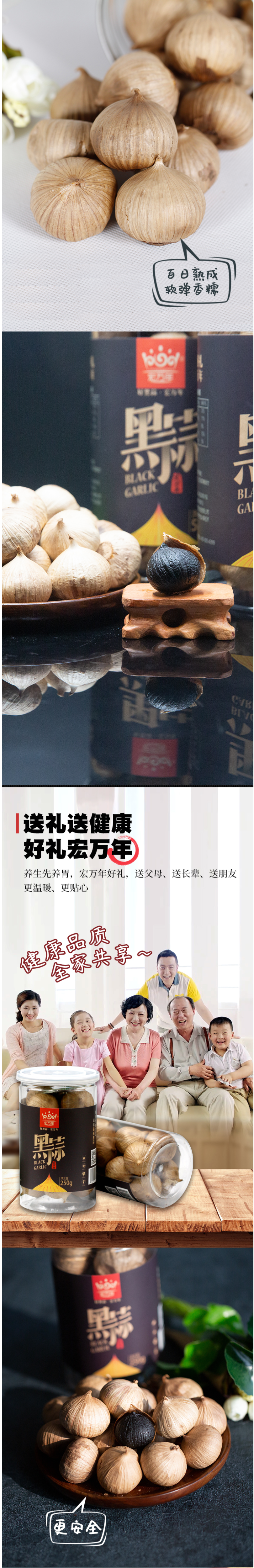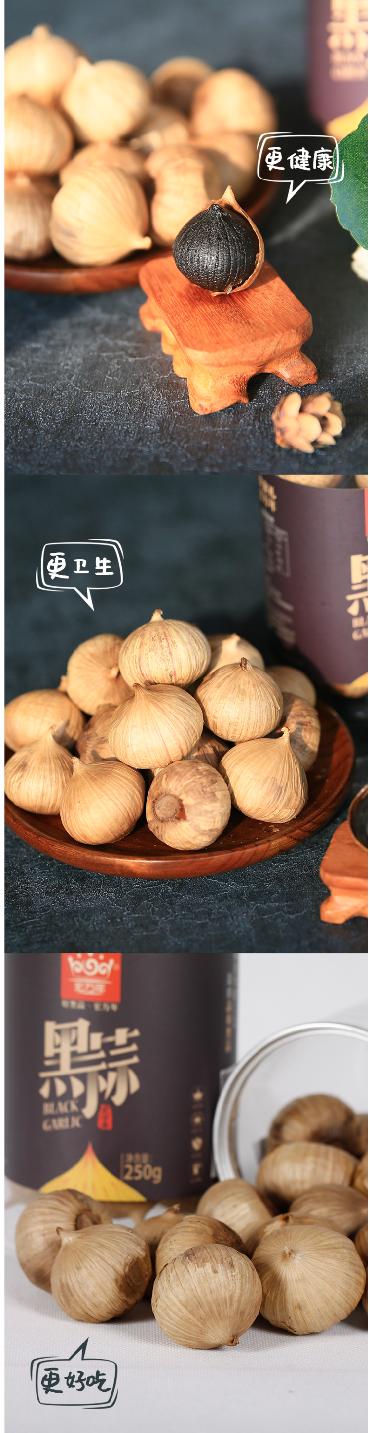 黑蒜食后无蒜臭,具有消除疲劳,提高自身的免疫能力,同时还可以缓解便秘,保护肝脏,提高前列腺的活性因子,促进睡眠的多种功效。