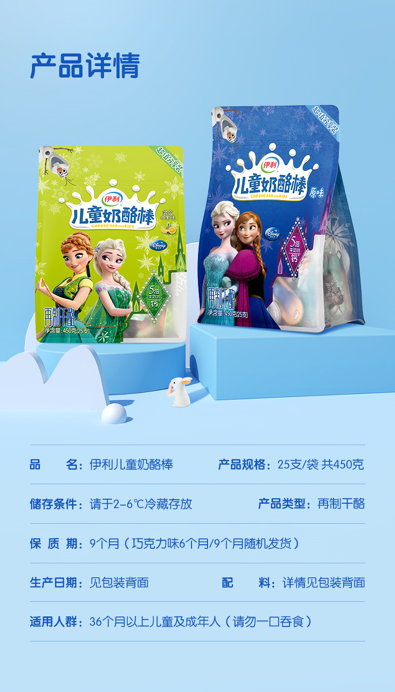 伊利奶酪旗舰店,迪士尼联名产品。5倍牛奶的钙,儿童奶酪棒加倍营养!富含牛奶蛋白,甄选进口奶源,臻达营养与美味的更高水准,口感细腻紧实,好吃不甜腻,采用比利时进口全密闭阻氧包装,牢牢锁住营养,杜绝外物污染。