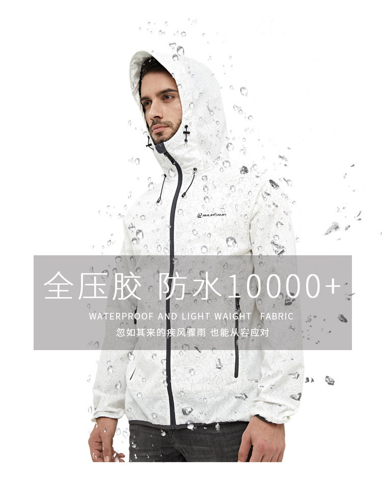 Amurcamp纸感系列冲锋衣,防水指数10000mm可防暴雨,直接当雨衣穿,透湿指数高达10000g激烈运动可穿;使用新颖的纸感面料,轻薄程度接近于纸,把冲锋衣的功能做到轻型风衣的重量,230克重量不到传统冲锋衣的一半。还拥有UPF 50+的50倍防晒功能。