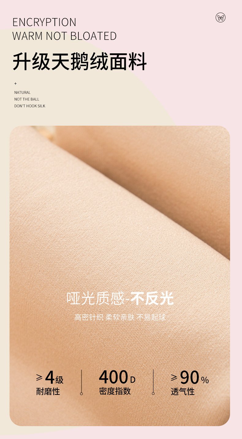 多种厚度可选,蝶安芬光腿神器打底袜,耐磨耐穿,美腿显瘦,季节在变,光腿依旧,升级天鹅绒面料,舒适从面料开始,高密针织不易起球,匠心品质,值得信赖!赠运费险领券链接点此