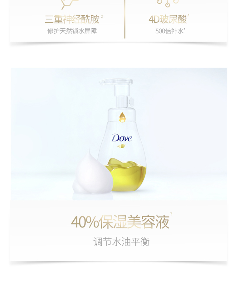 天猫超市79元,可领5元优惠券,实付74元到手;返5元天猫超市卡。送卸妆巾8片。这款Dove 多芬 神经酰胺洁面慕斯,全新升级,氨基酸配方,温和洁面不刺激。神经酰胺保护角质层,修复肌肤;添加40%美容液,清洁的同时还可以做到滋润补水。绵密泡沫,直达细微毛孔,深层清洁。