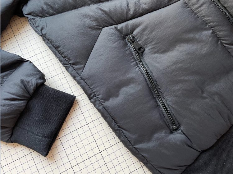 这款棉服是尼龙面料,不易起静电。里面填充絮状聚酯纤维材质的合成棉,厚度和轻羽绒差不多,左右插袋都带拉链,针织螺纹袖口,细节做的都不错,没有明显不足,穿着舒适度也比较好。