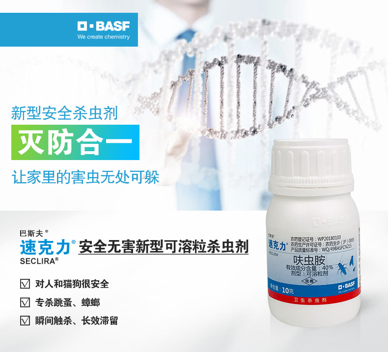 天猫BASF巴斯夫旗舰店39.9元,可领10元优惠券,实付29.9元到手,10g装,2.5g速克力可以兑500ml水(整整一喷壶),主攻蟑螂和跳蚤,对苍蝇等小虫也有很好的杀灭功效。