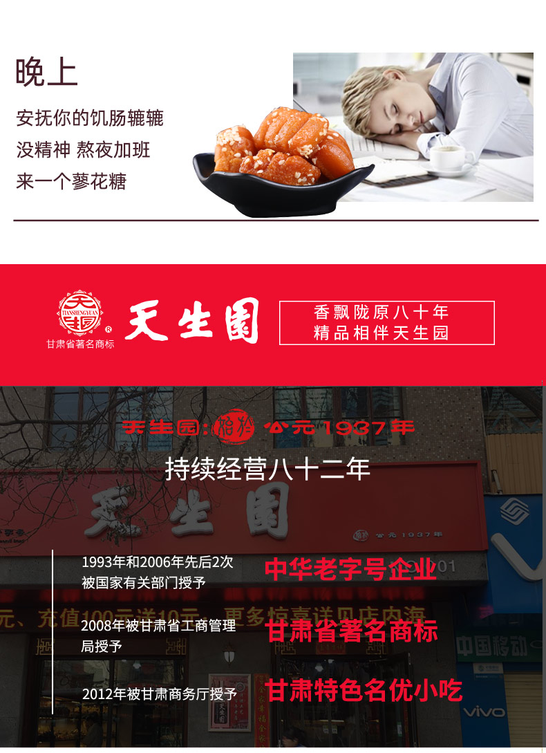天猫天生园食品旗舰店20.8元,可领11元优惠券,实付9.8元到手,1斤装,比线下超市便宜,小编已入手。兰州天生园是中华老字号企业,是由浙江萧山人氏高先生于1937年创建的,已有七十年历史,以传统糕点生产为主,其中三刀蜜、三合公水晶饼是天生园的传统名点。
