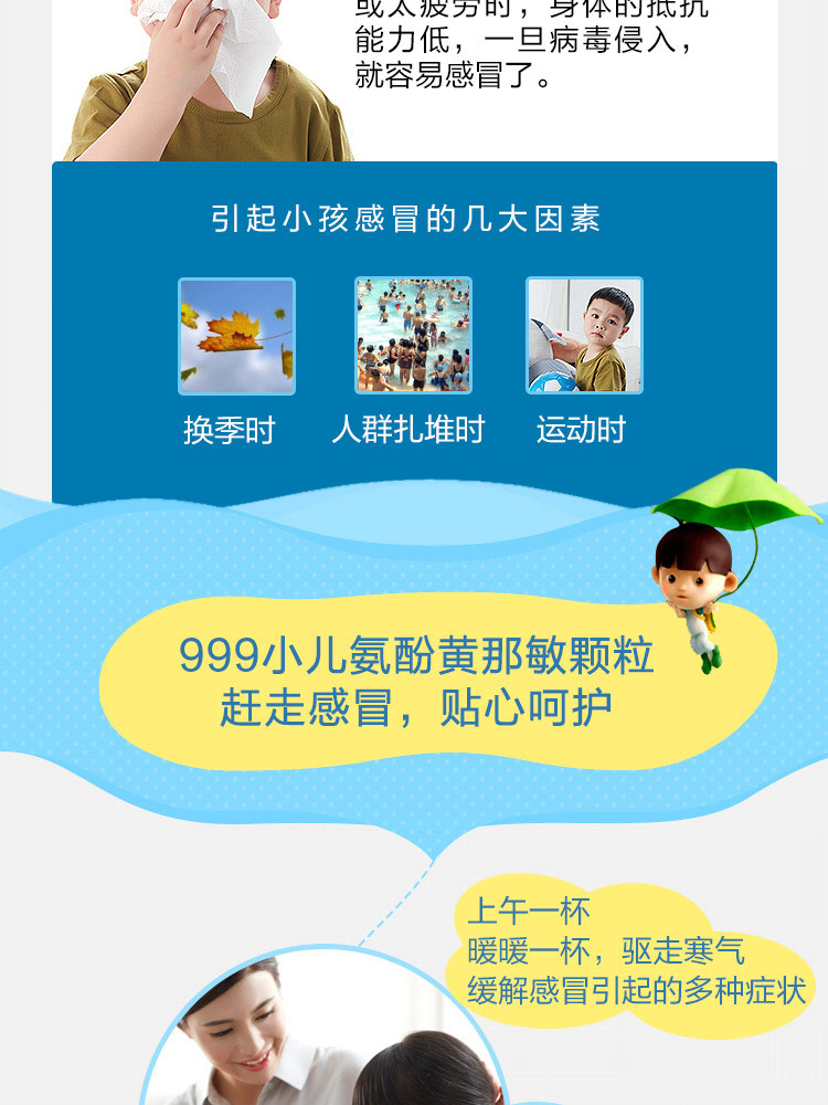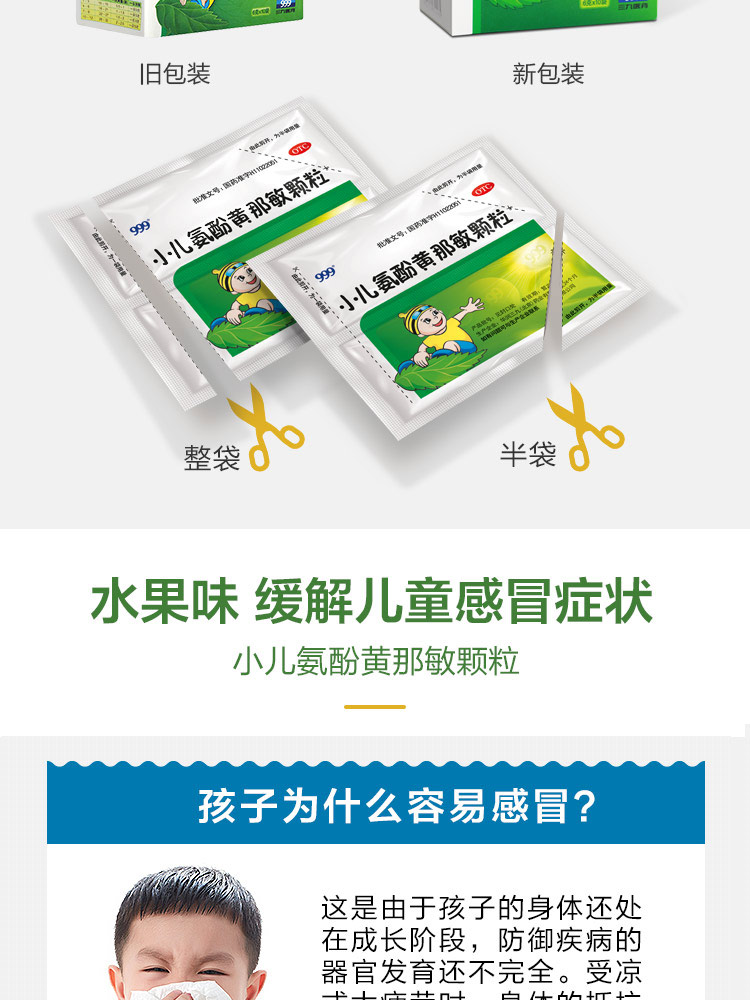 999品牌值得信赖,专治小儿感冒,发烧,流鼻涕,咽痛等。多变季节预防感冒,缓解感冒,甜橙口味,适合儿童,6g每袋,分3g一半,居家必备