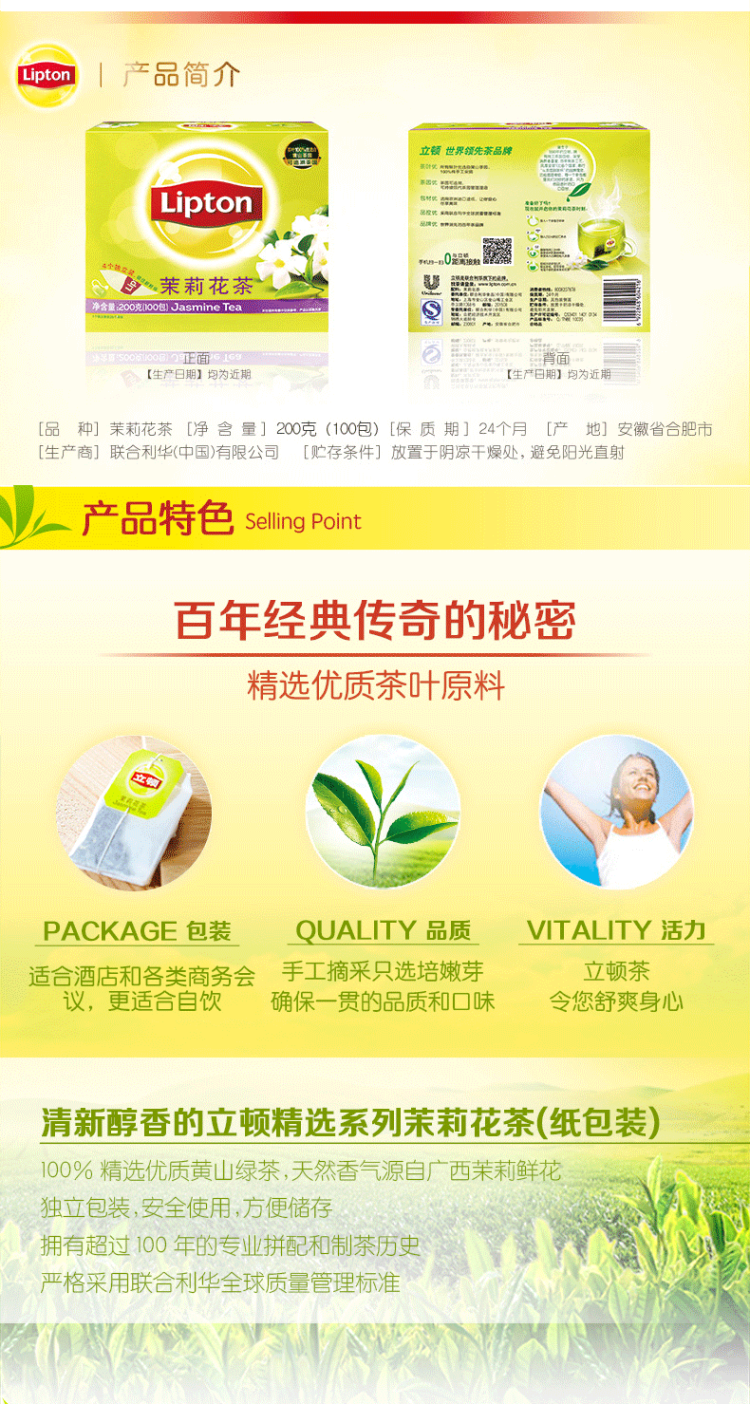 天猫联合利华立顿旗舰店49.9元,可领5元优惠券,实付44.9元到手,清新茉莉 天然原叶 口味美满,