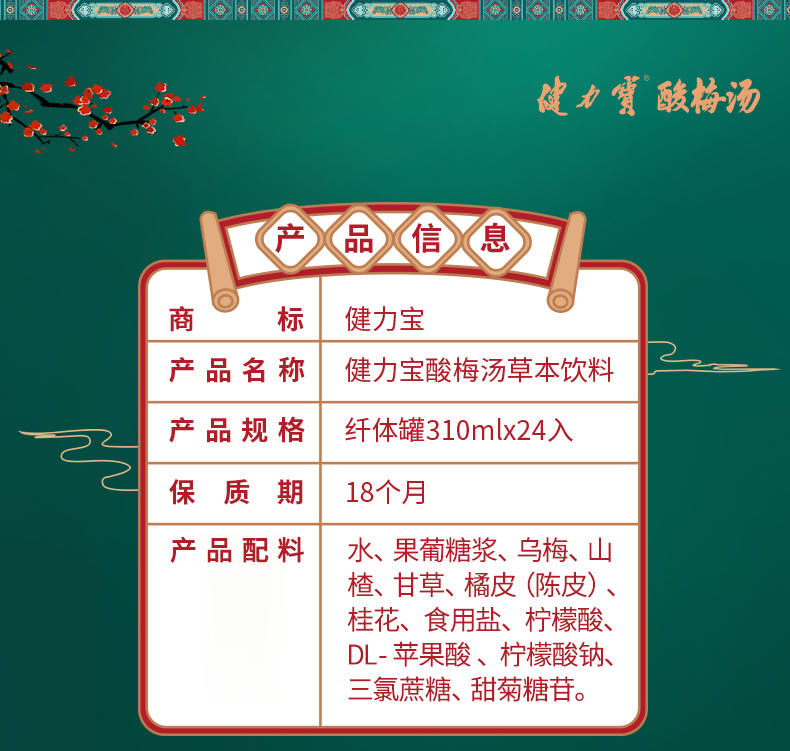 天猫健力宝官方旗舰店54.9元,可领3元优惠券,实付51.9元到手,健力宝酸梅汤,精选浙江长兴和安徽亳州优质乌梅、山东山楂、内蒙古甘草、安徽橘皮、广西桂林桂花等优质原料,真材实料匠心慢熬100分钟以上,不添加色素、防腐剂等化学香料,醇正够味,酸甜解腻,宫廷风格,聚会常备!