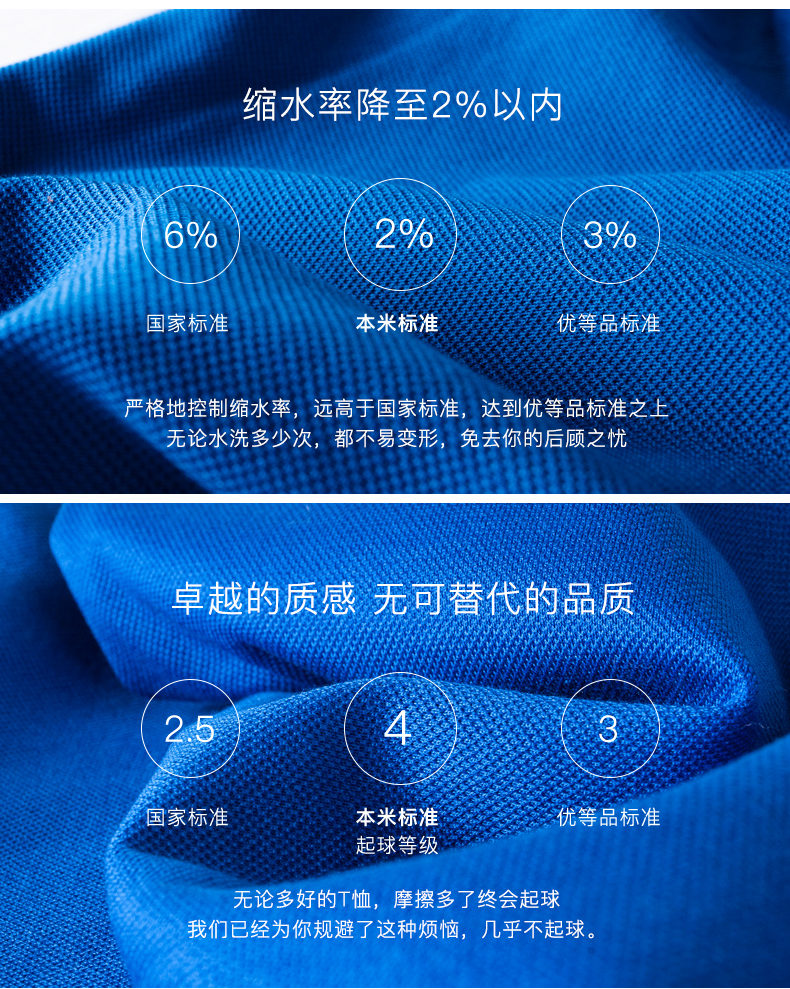 2、面料会选用长绒棉/皮马棉/丝光棉、科技速干等高端材质,织成带微弹力的珠地网眼面料,透气不沾身;