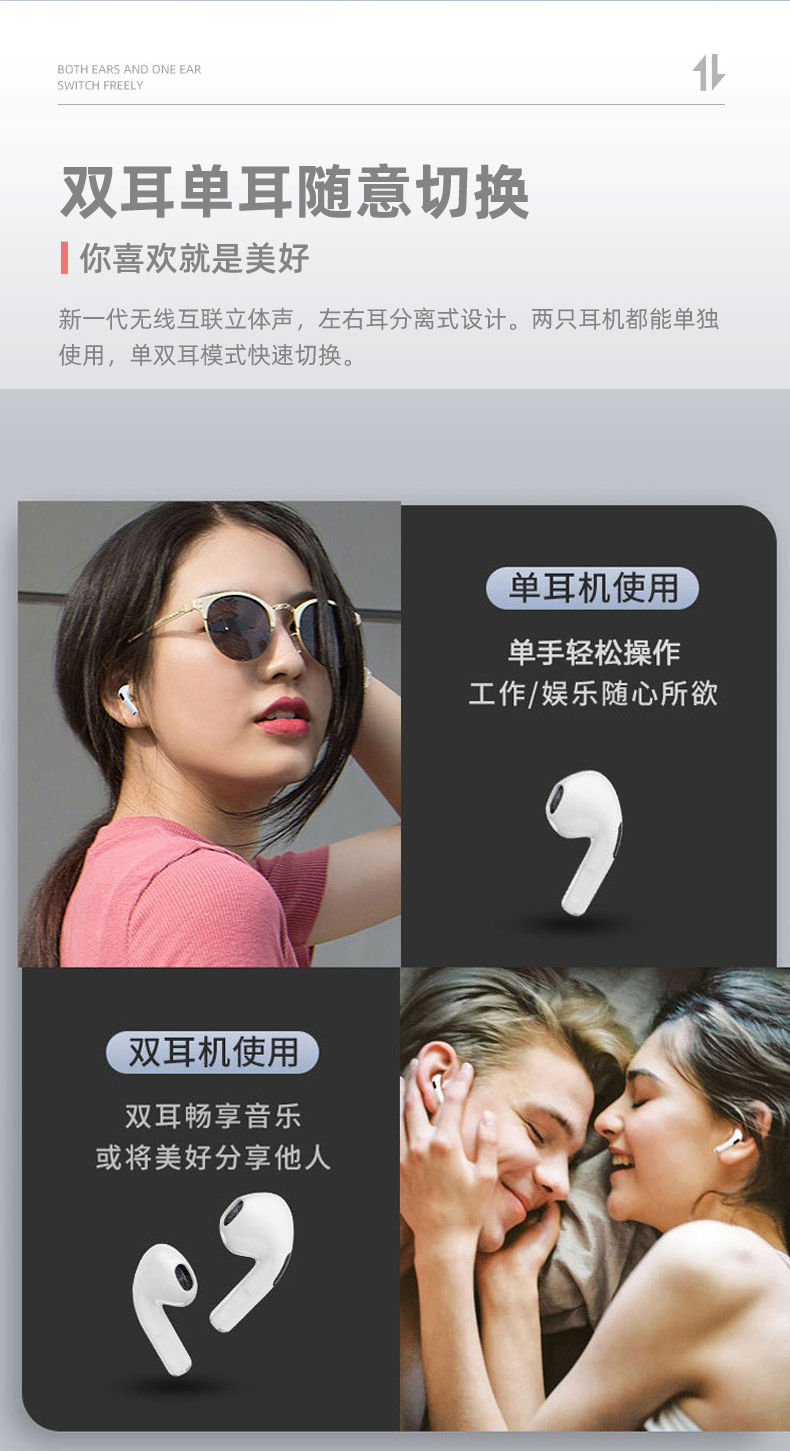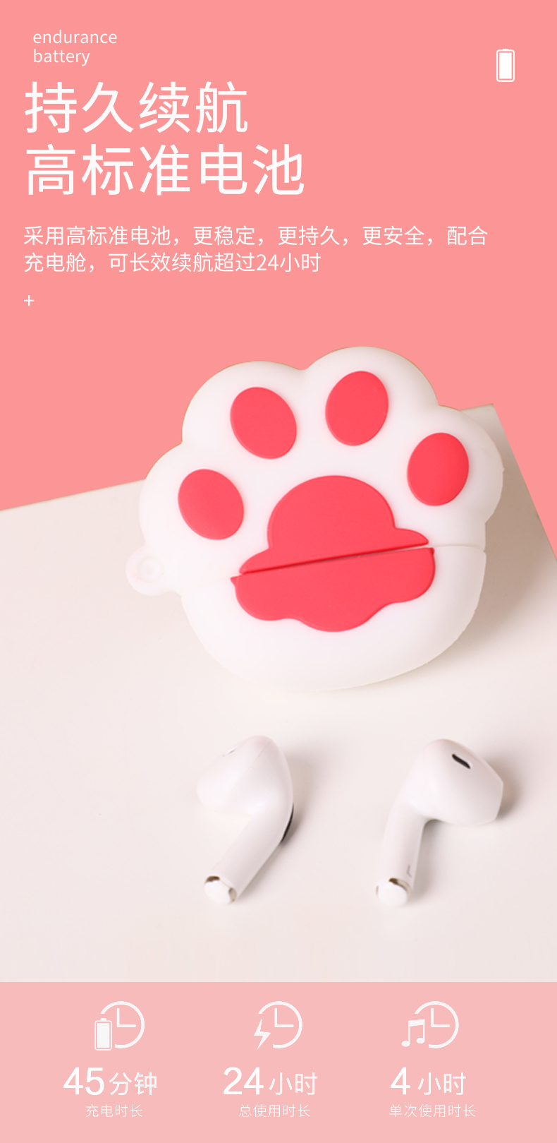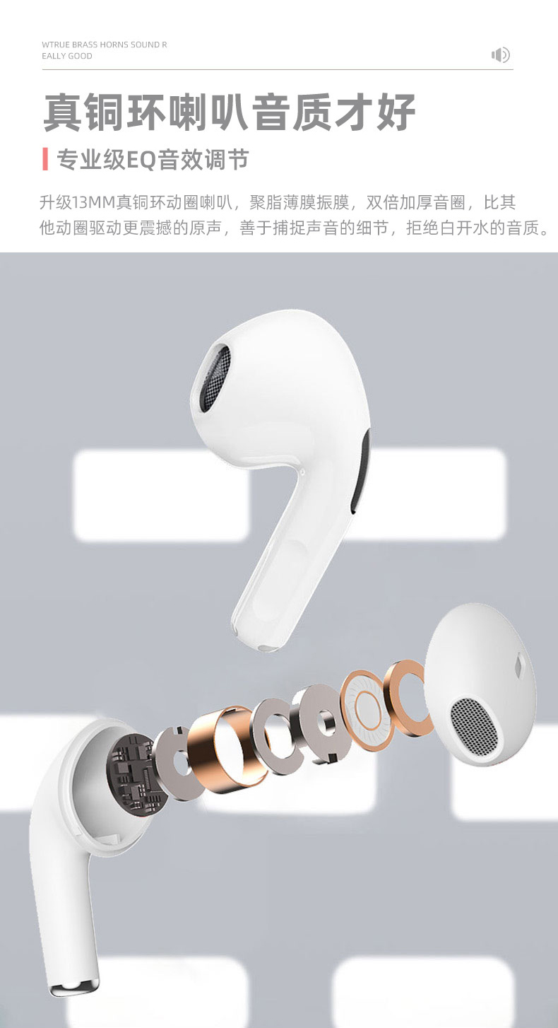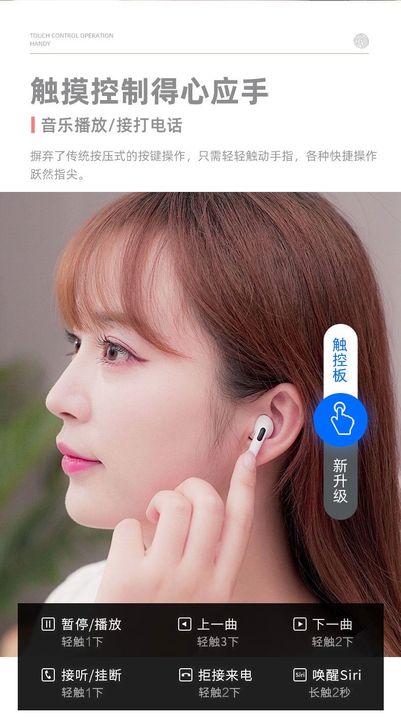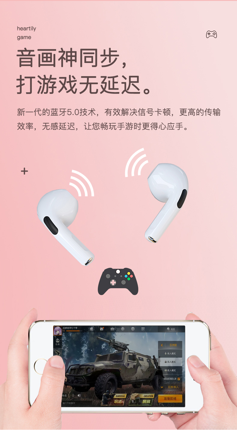内置蓝牙5.0高速芯片,连接迅速能耗低,支持指纹触控操作,触摸即可实现多种操控,高品质13mm旗舰单元,音质优秀,续航长达4小时,搭配充电仓使用,玩一整天也够用。