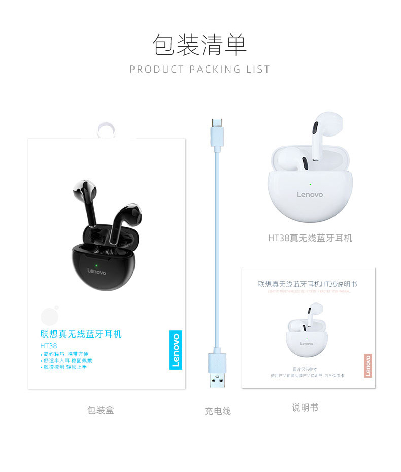 天猫仁美数码专营店65元,可领20元优惠券,实付45元到手,前2款此价。这款联想HT38 耳机是使用的是类似于airpods的公模,虽有抄袭的感觉,但是也有了苹果的高级人体工程学,使用方便舒适。