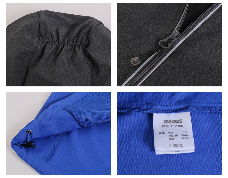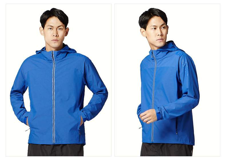 这款连帽外套是锦纶+聚酯混纺而成,耐穿速干透气,拥有四向弹力,后身还有透气孔。
