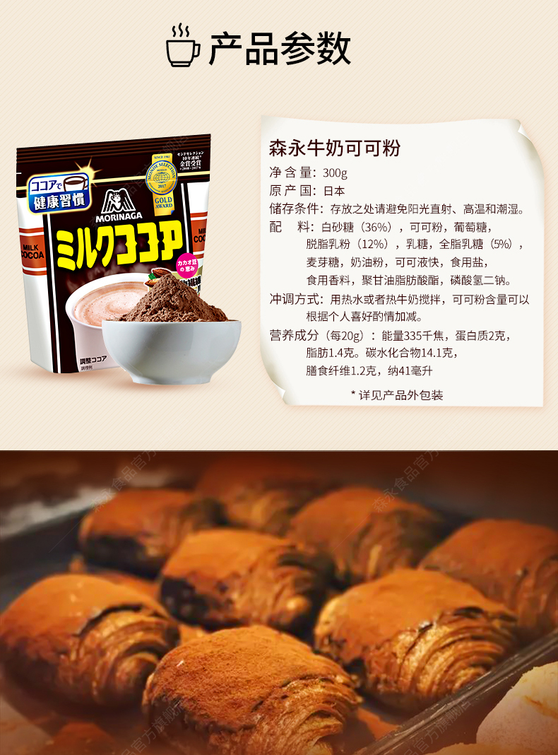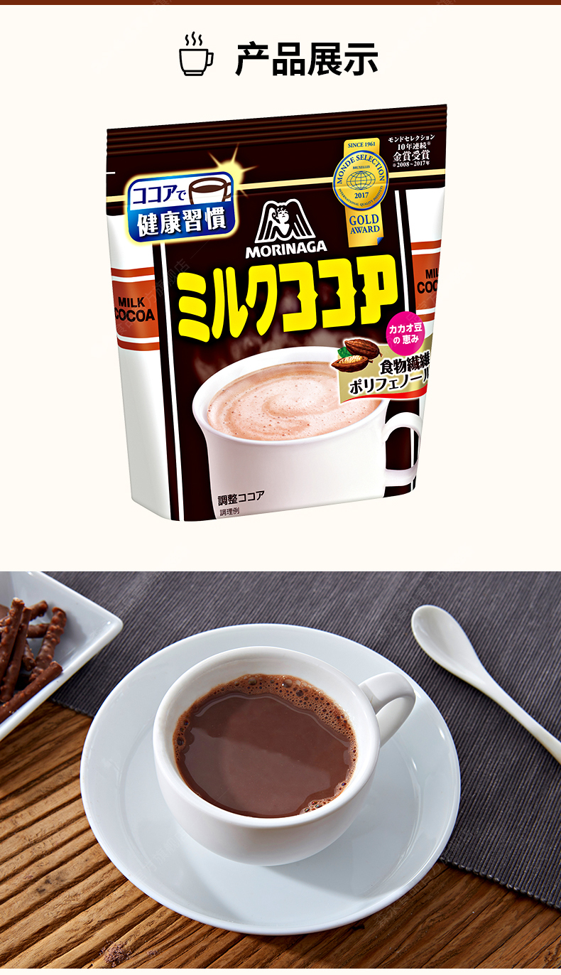 这款Morinaga 森永 牛奶可可粉,日本进口,老少皆宜,香醇怡人的口感,冷热均可冲饮,同时还有多种DIY做法。富含植物多酚,膳食纤维,矿物质,不含植脂末,健康又美味。自带密封条,方便开袋后保存。