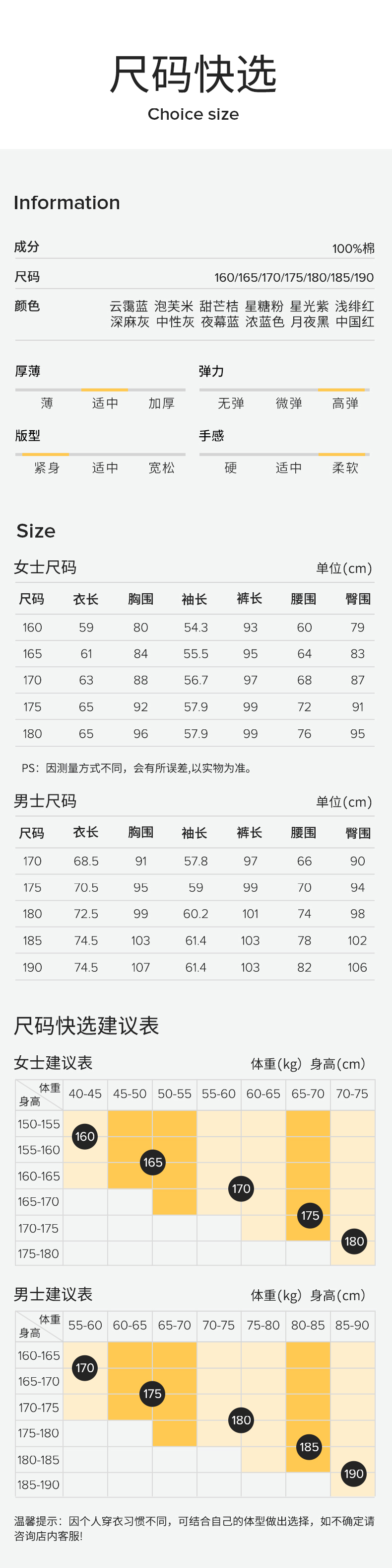 100%纯棉面料,亲肤柔软吸湿,使用活性印染工艺,安全无甲醛,洗后不易掉色。在版型和细节上,3D立体剪裁的修身版型,能很好的贴合身体,舒适有型,后颈是无感标签,无刺痒感;衣面经过耐刷洗测试,不易起球,简洁花边的圆领和裤脚,增添女性的优雅气息。舒适领口,隐形不外露,双针走线平滑不易变形。