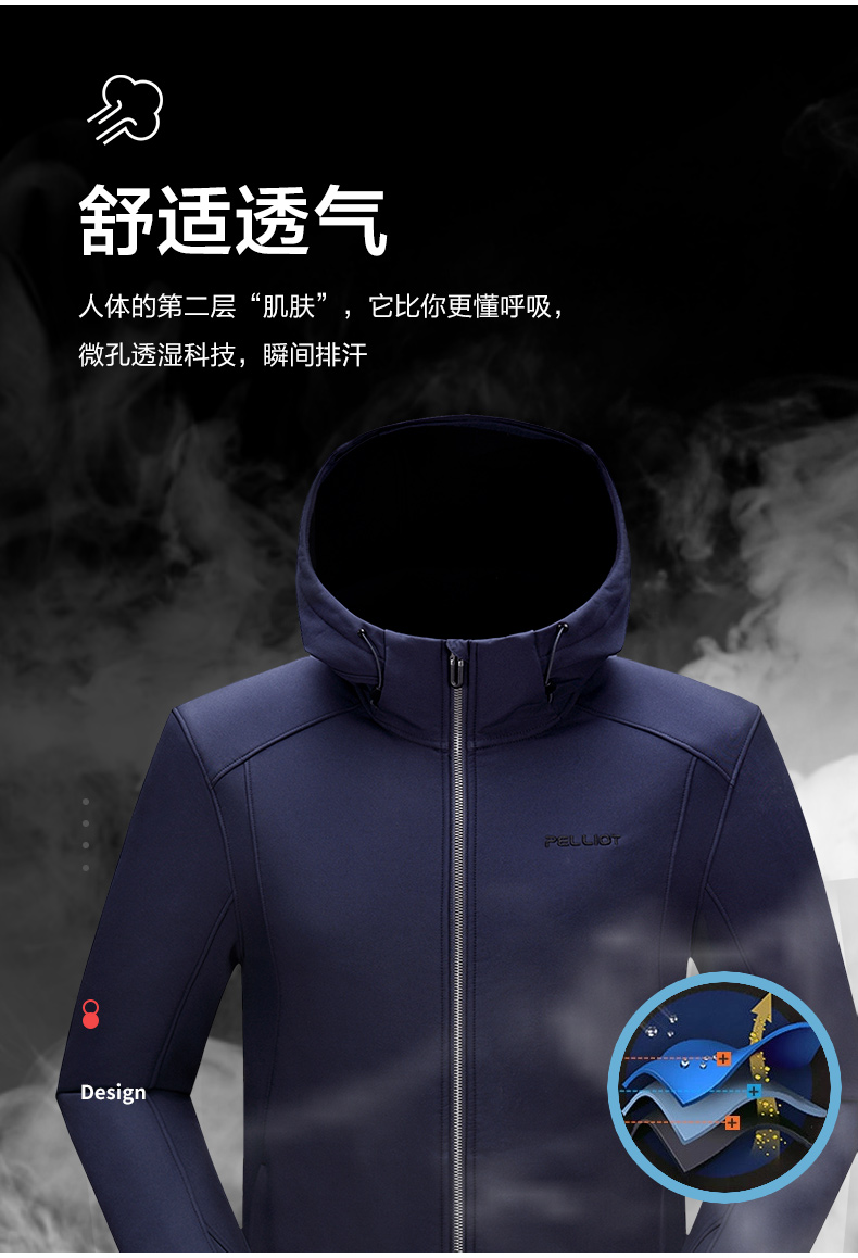 这款伯希和软壳冲锋衣,一体轻量化设计,采用100D四面弹透气面料结合中层薄膜,结构致密紧实,防风保暖透气,久穿不闷热;针对软壳防水性差的特点,在面料表面DWR技术处理,表面形成斥水层,产生荷叶拒水效果,可以让水凝结成水滴后滚落,表面抗污耐脏,打理方便。内里附着100D优质的摇粒绒,轻量蓬松、达到锁温保暖效果。