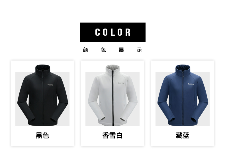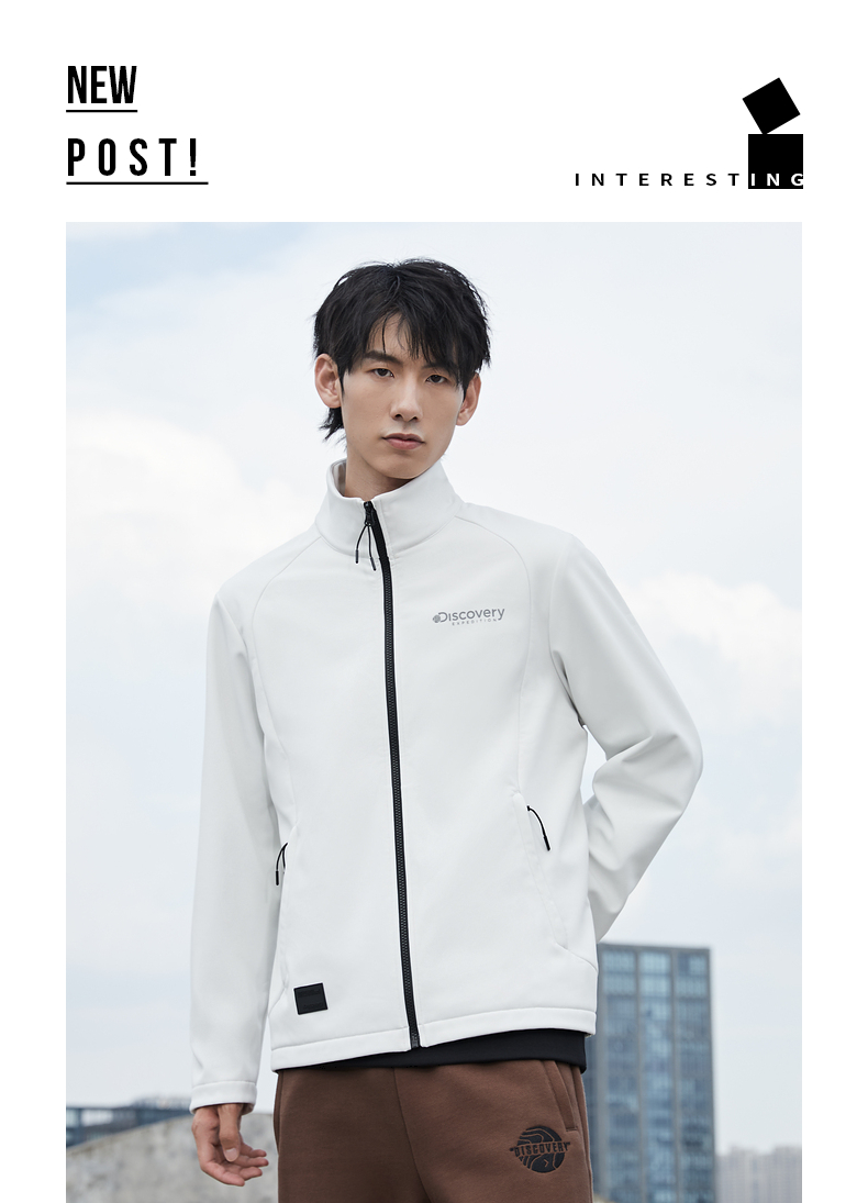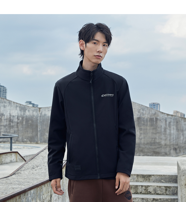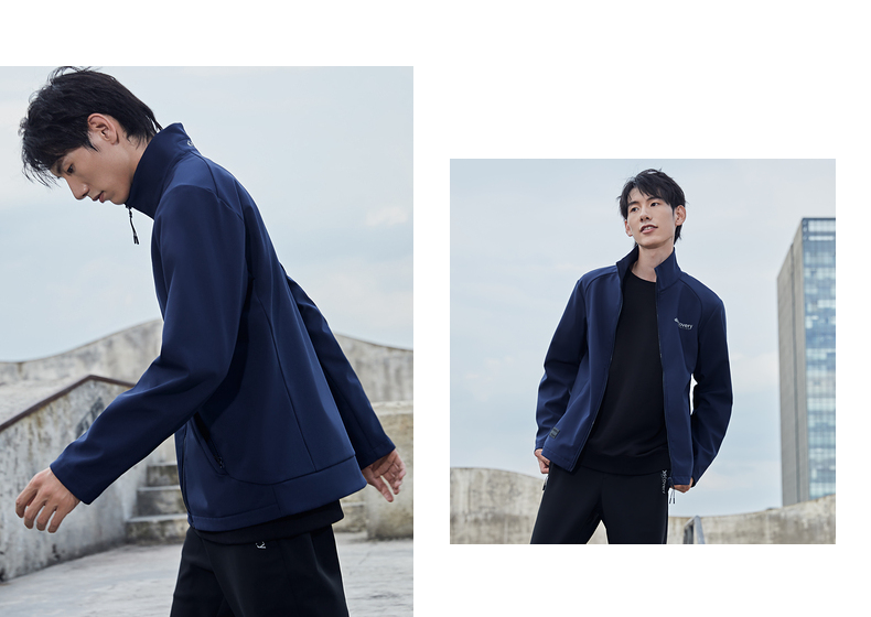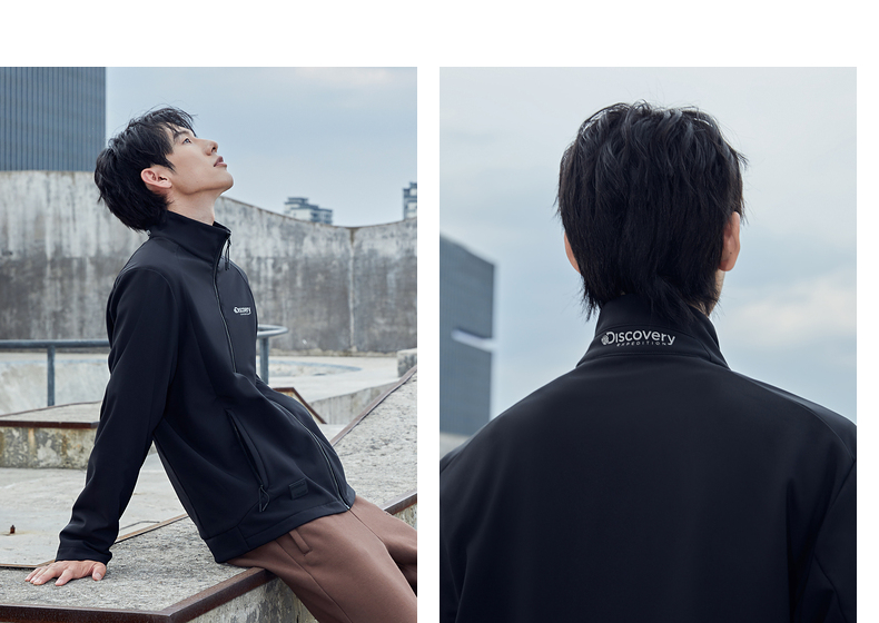 这款Discovery 男士 软壳外套,外层面料集防风防泼水、轻量透气于一体,相比硬壳(冲锋衣),具有更加良好的透气性,面料中可以混入10%的弹力纤维,弹力伸展,即使运动中也可以提供很好的舒适性,而且衣服摩擦时的声音会小很多,穿着更舒适。