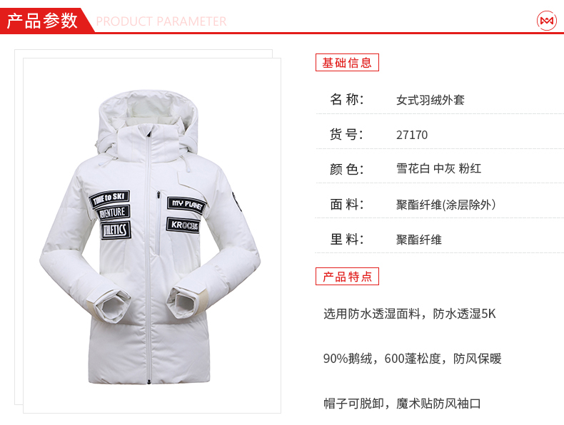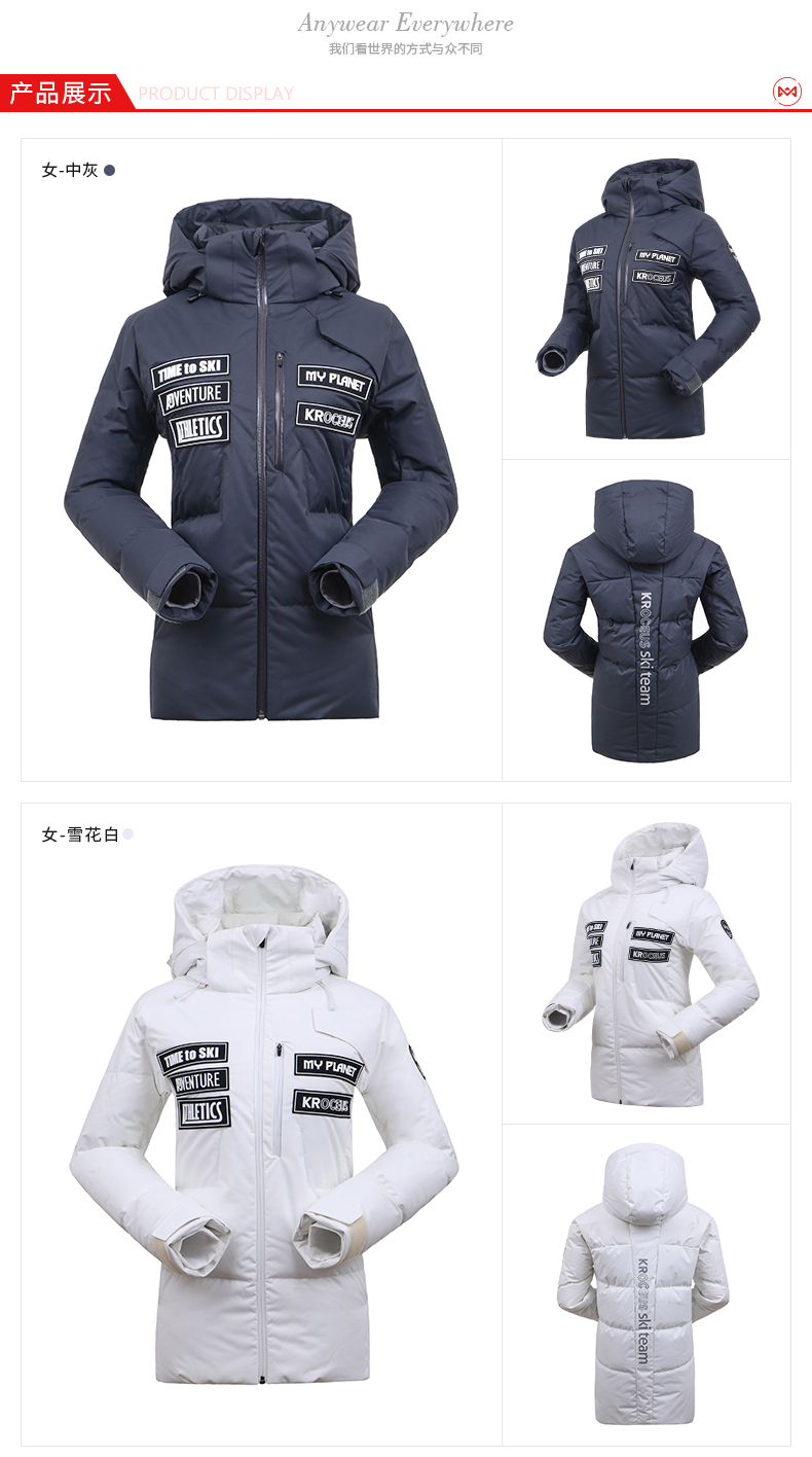这款羽绒服是地球科学家的旗舰款,为冬季滑雪设计,滑雪服都需要防水,所以外层是防水的冲锋衣面料,M码充绒量高达219克,超级厚实保暖。有雪花白、中灰、粉红三种颜色,小编觉得白色最好看。