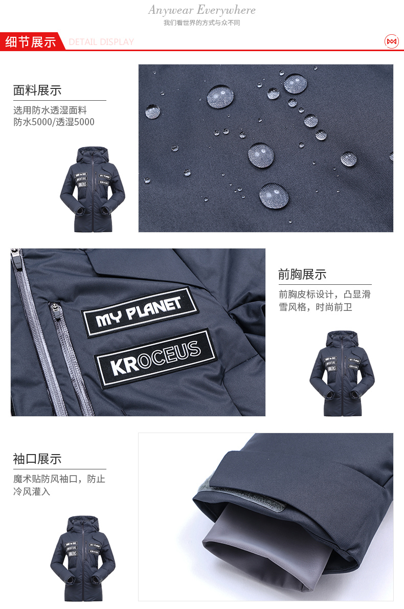 地球科学家这款羽绒服,在我看来,是DESCENTE滑雪服的改良款,版型差不多,但填充的羽绒,迪桑特的是鸭绒,地球科学家改为鹅绒。在外层面料上,使用5000防水透湿,并且耐磨的冲锋衣面料,近乎100%防雨、100%防风,还拥有良好的透气性。滑雪是比较危险的高速运动,对防水和坚固都要求很高的。