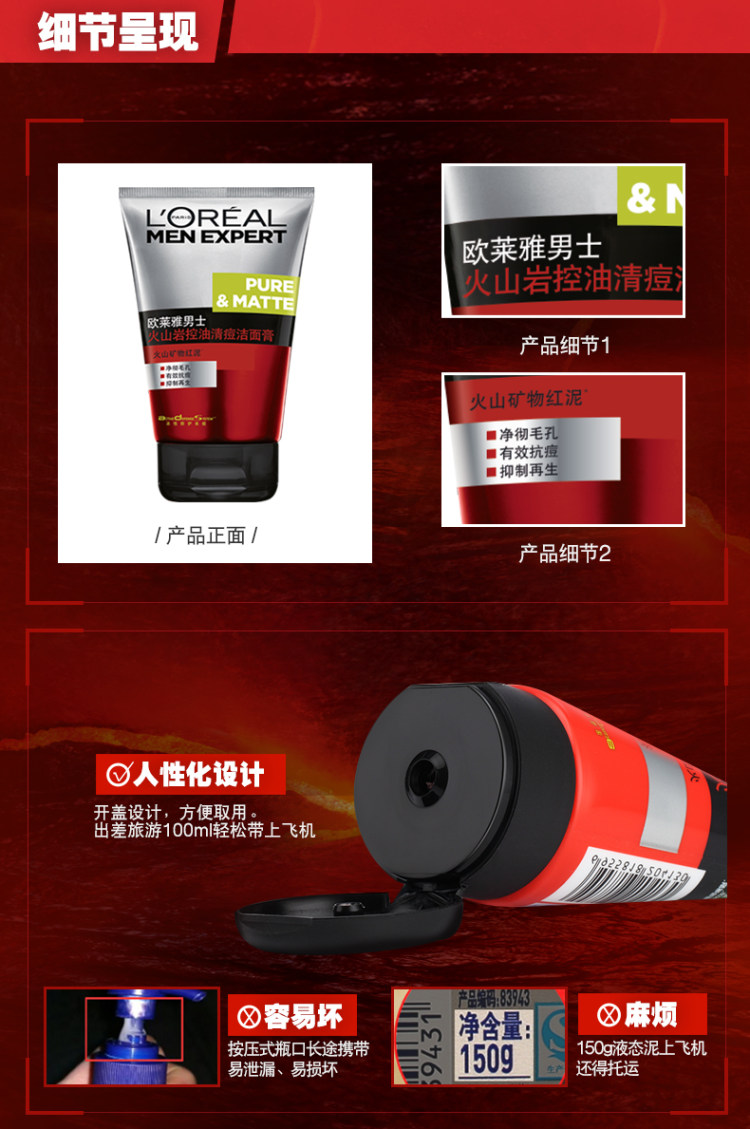 天猫欧莱雅男士官方旗舰店48.9元,可领10元优惠券,实付38.9元到手,赠送50ml。采用来自火山岩矿的天然净化能量,带走多余的油脂污垢,可加强皮肤对营养物质、氧气等更好的吸收,并且含有水杨酸等成分,深入毛孔内阻塞部分,彻底祛除污垢和老废角质,疏通净化毛孔,温和不刺激。