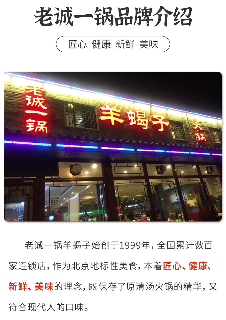 天猫老诚一锅食品旗舰店99.8元,可领20元优惠券,实付79.8元到手。20年北京老店,全国800+家门店。配有原汤的羊蝎子熟制礼盒,规格1250g,固形物>500g。精选苏尼特6月羔羊,多道工艺制成,酱香微辣,肉质细嫩,味香浓郁。