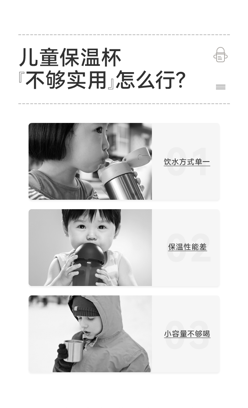 开盖直饮杯盖:开盖直饮,适用于学龄儿童多种饮水场景需求。